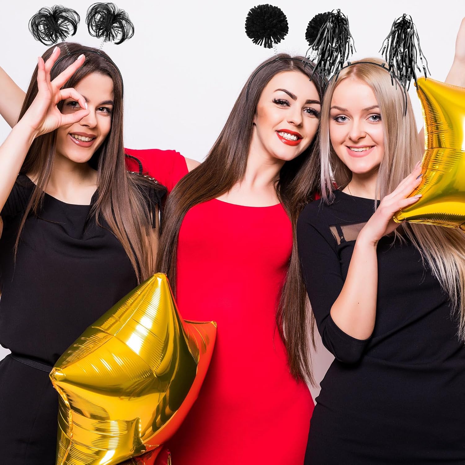 Censen 12 Pcs Halloween Pom Pom Party Headbands Tinsel Ponytails Spirit Head Bopper Headwear for Christmas Birthday Holiday