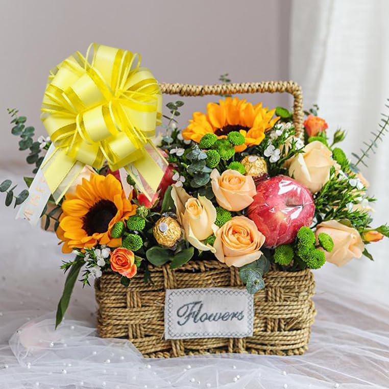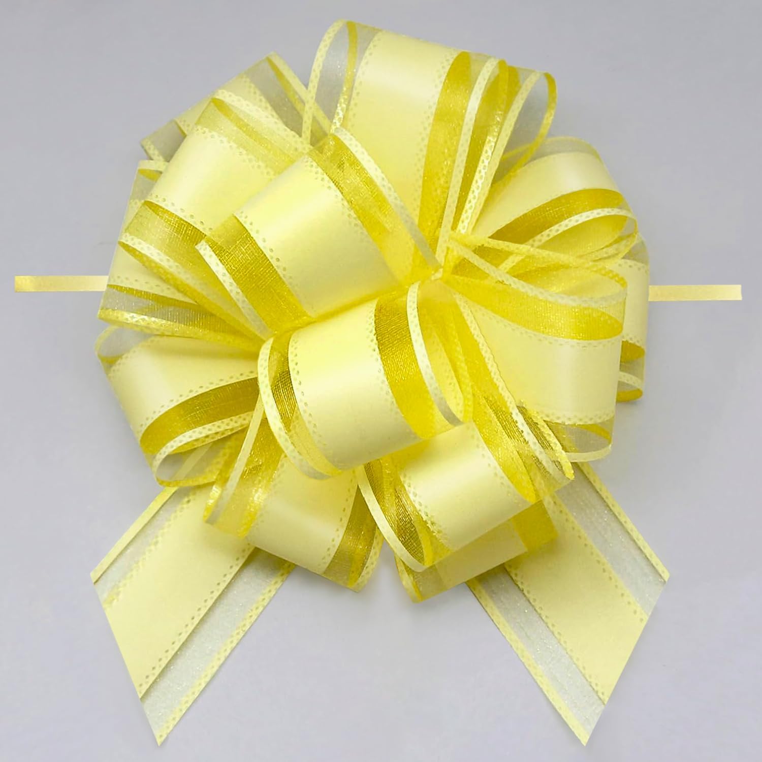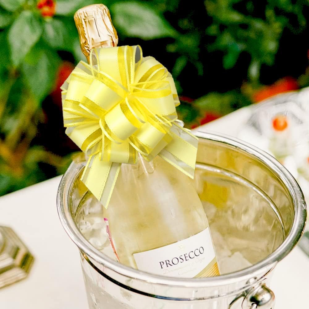 6 Pieces Large Pull Bows, 6 inches, Floral, Yellow, Organza, Wedding, Baby Shower, Bridal Shower, DECORATIVE RIBBON TRIM, 6 Count