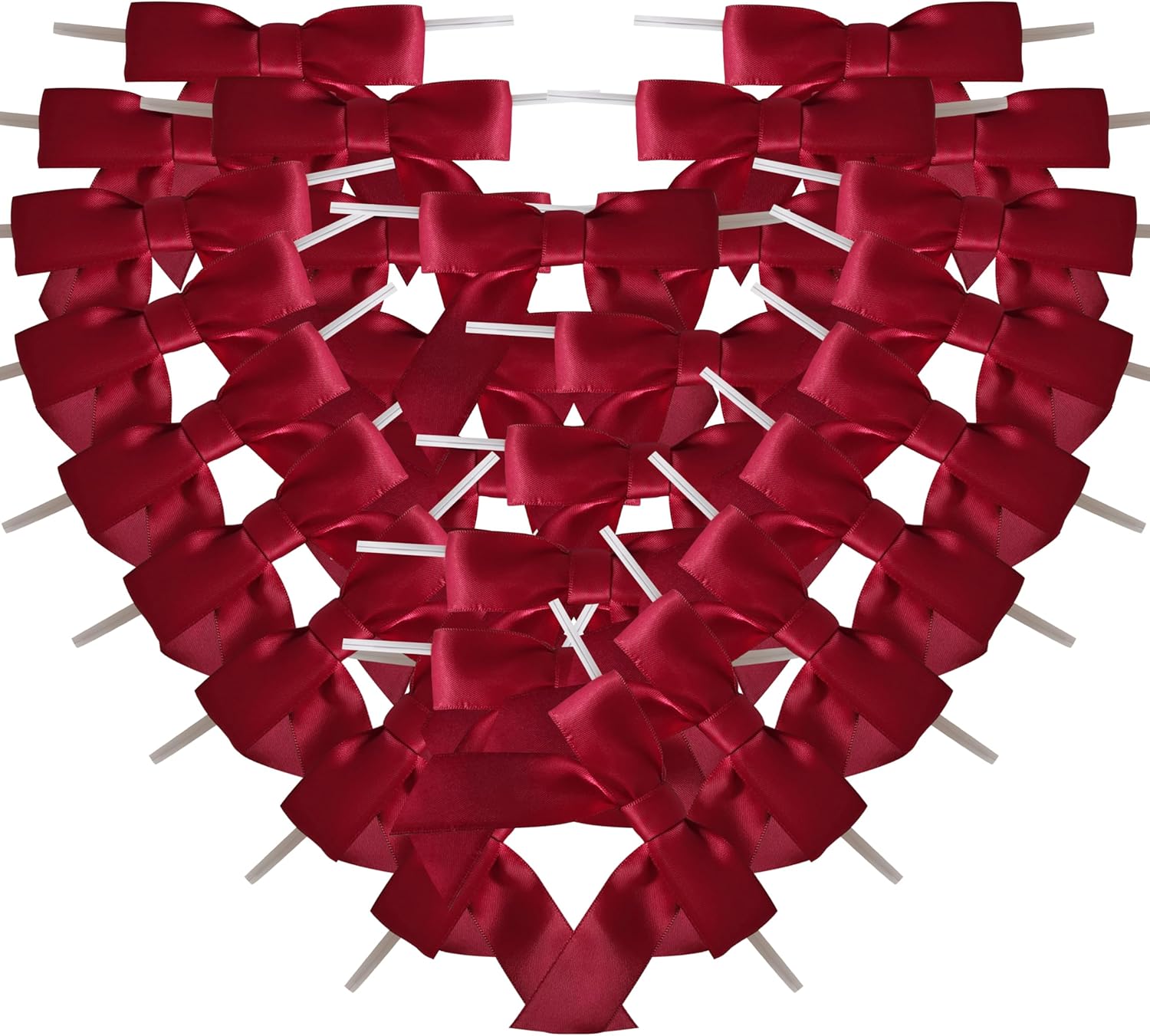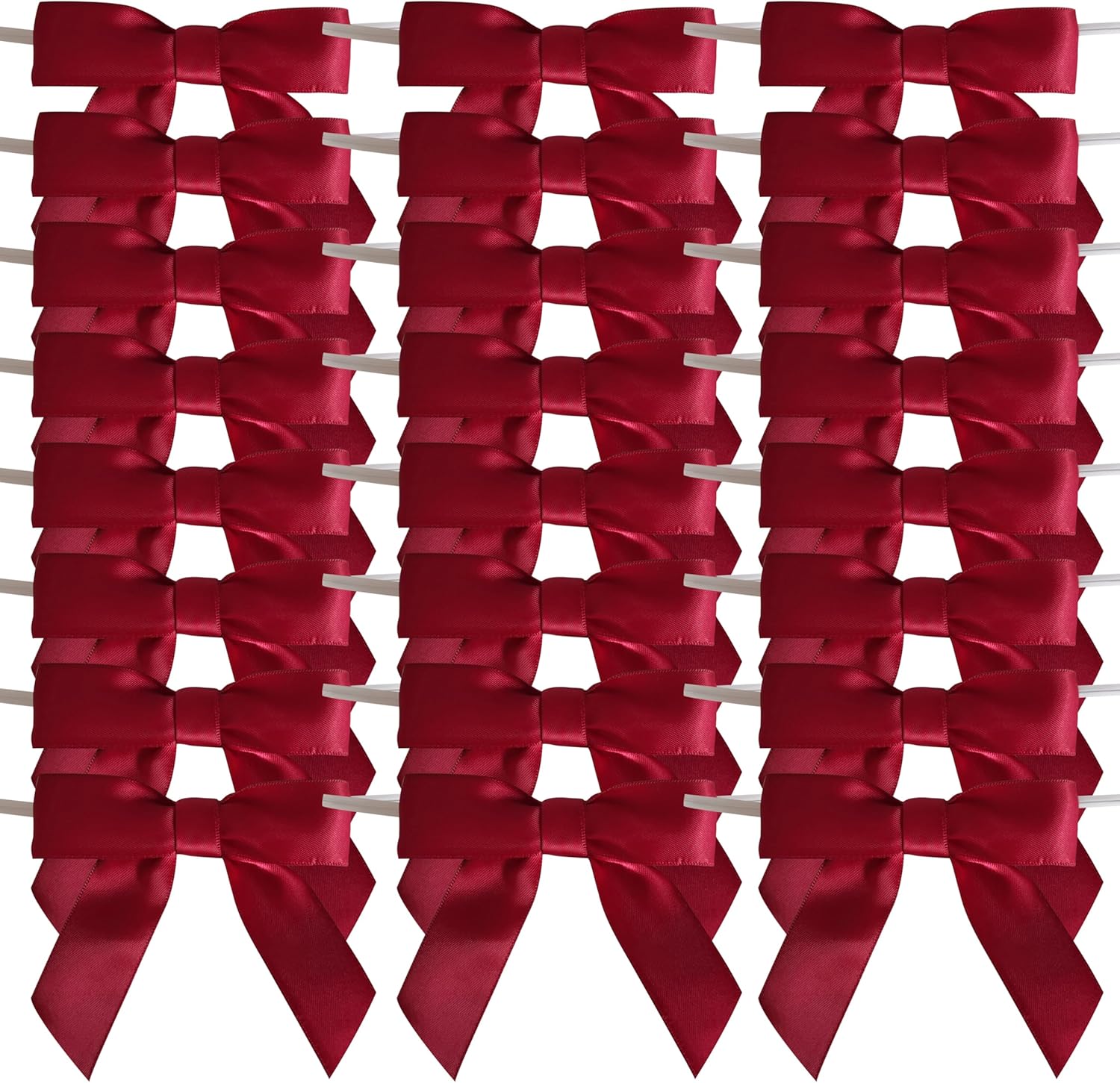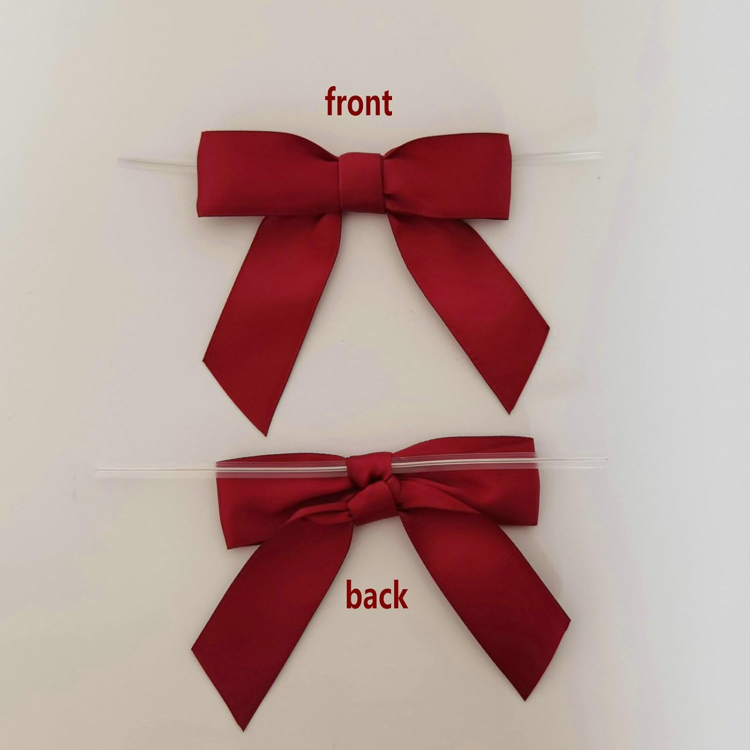 3-1/2" Burgundy Satin Ribbon Bows with Twist Ties Giant Bows for Christmas Holiday Gift Packing&Wrapping (50pcs,Burgundy)
