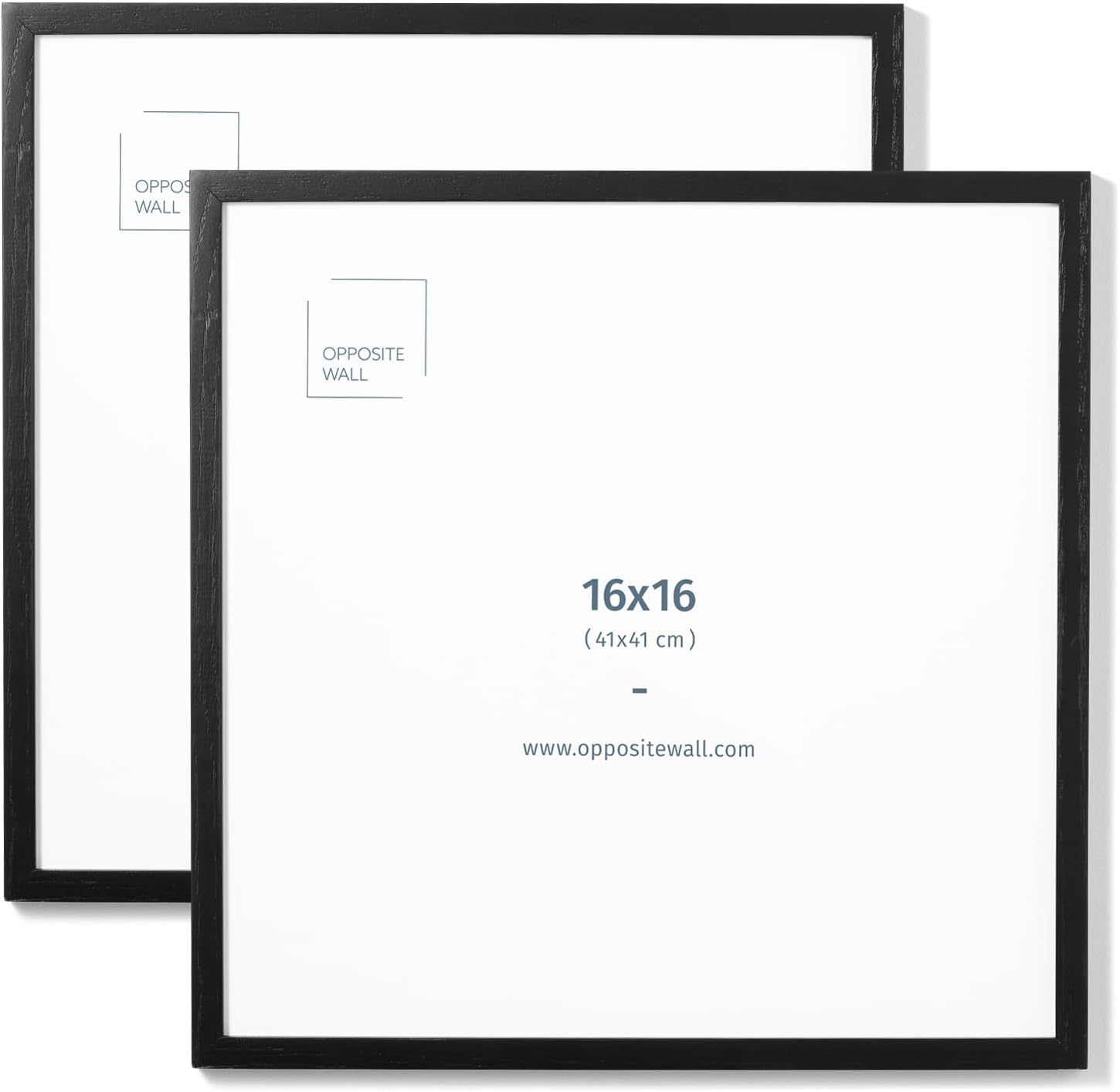 Opposite Wall - 16x16 in - Black Solid Oak Wood Picture Frame - Lightweight, Versatile & Shatterproof - Wall Hanging Poster or Photo Frame - Wall Decor for Office, Gallery & Home - 2 Pack
