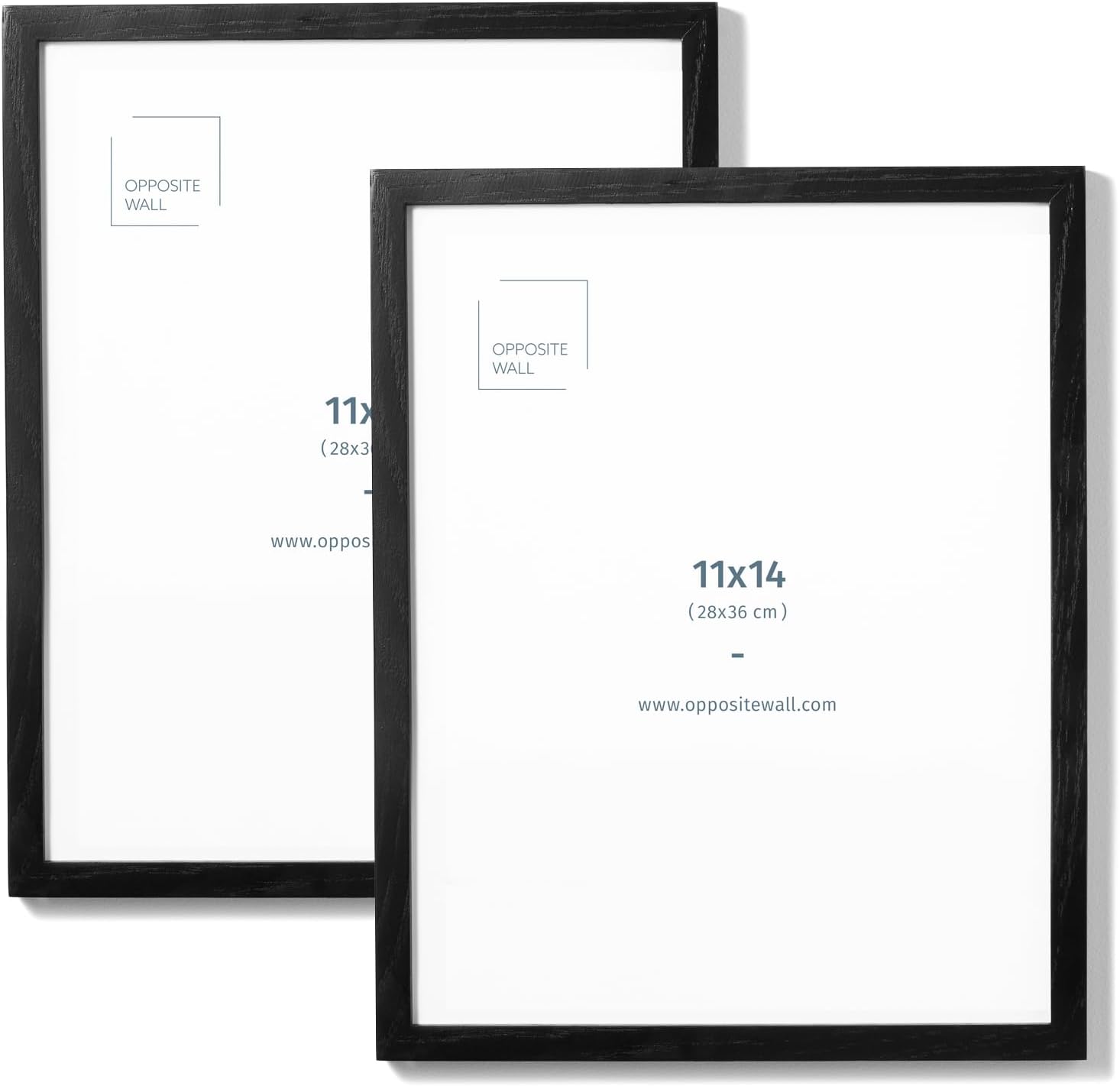 Opposite Wall - 11x14 in - Black Solid Oak Wood Picture Frame - Lightweight, Versatile & Shatterproof - Wall Hanging Poster or Photo Frame - Wall Decor for Office, Gallery & Home - 2 Pack