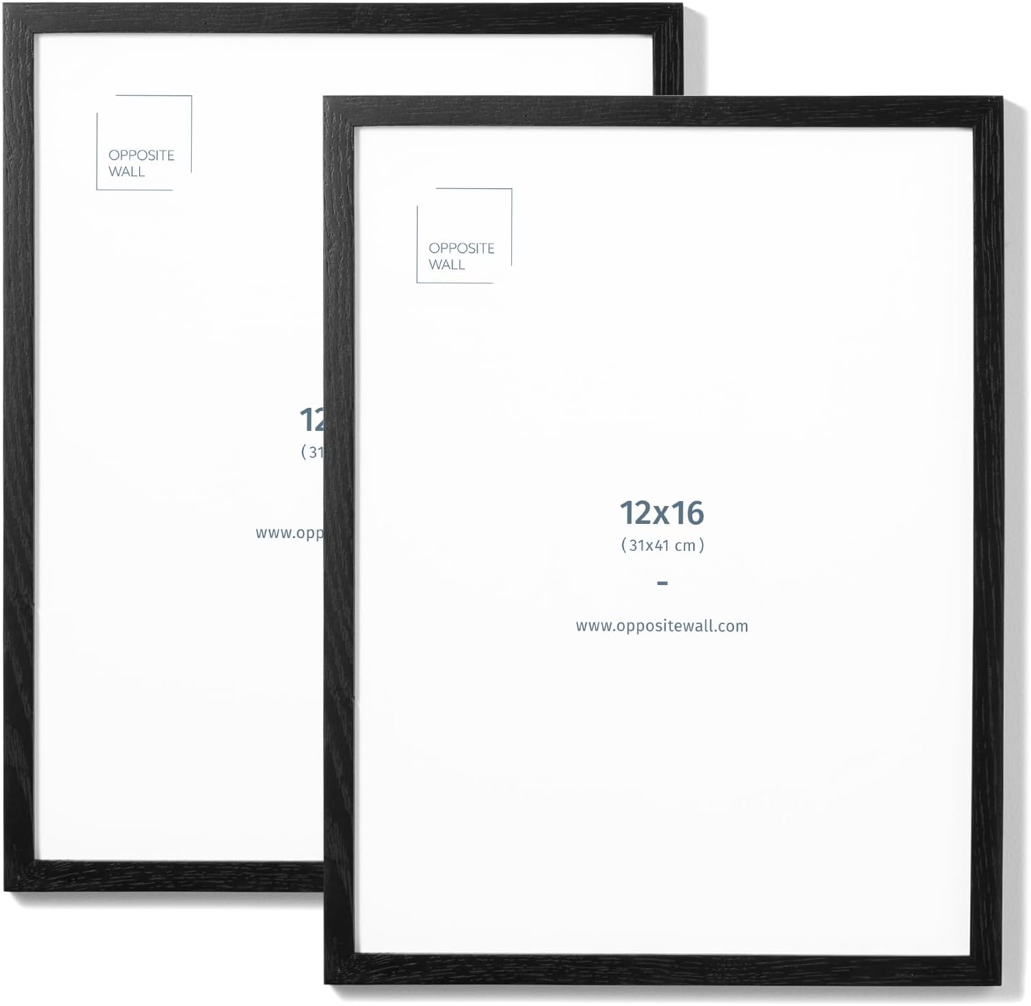 Opposite Wall - 12x16 in - Black Solid Oak Wood Picture Frame - Lightweight, Versatile & Shatterproof - Wall Hanging Poster or Photo Frame - Wall Decor for Office, Gallery & Home - 2 Pack