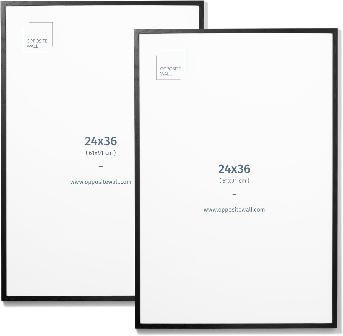 Opposite Wall - 24x36 in - Black Solid Oak Wood Picture Frame - Lightweight, Versatile & Shatterproof - Large Wall Hanging Photo or Poster Frame - Wall Decor for Office, Gallery & Home - 2 Pack