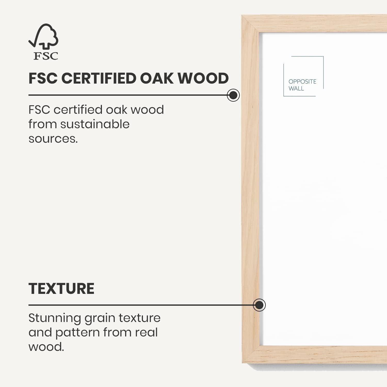 - HIGH-QUALITY SOLID OAK WOOD PICTURE FRAME - Designed in Montreal, Canada, this FSC-certified frame exudes quality. Sturdy construction and visible wood grains embrace the natural variation in authentic color. As a natural wood product, the oak color may slightly vary from the photo.