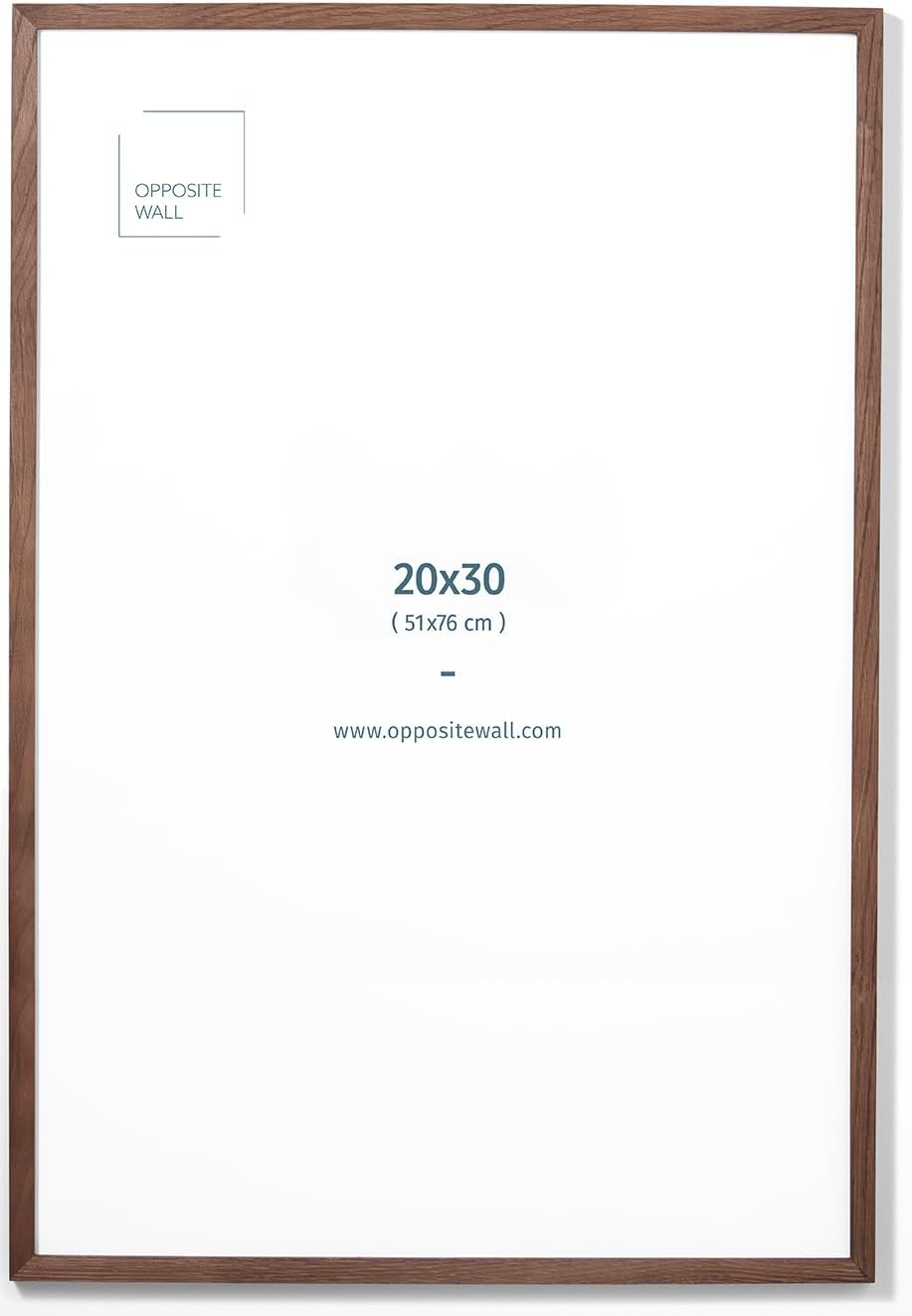 - SPECS & INCLUSIONS - 20x30 poster frame. Dark solid oak wood, 0.6 in wide, 0.8 in deep. Posters & hanging accessories are not included. Robust packaging in corrugated boxes with corner protection.