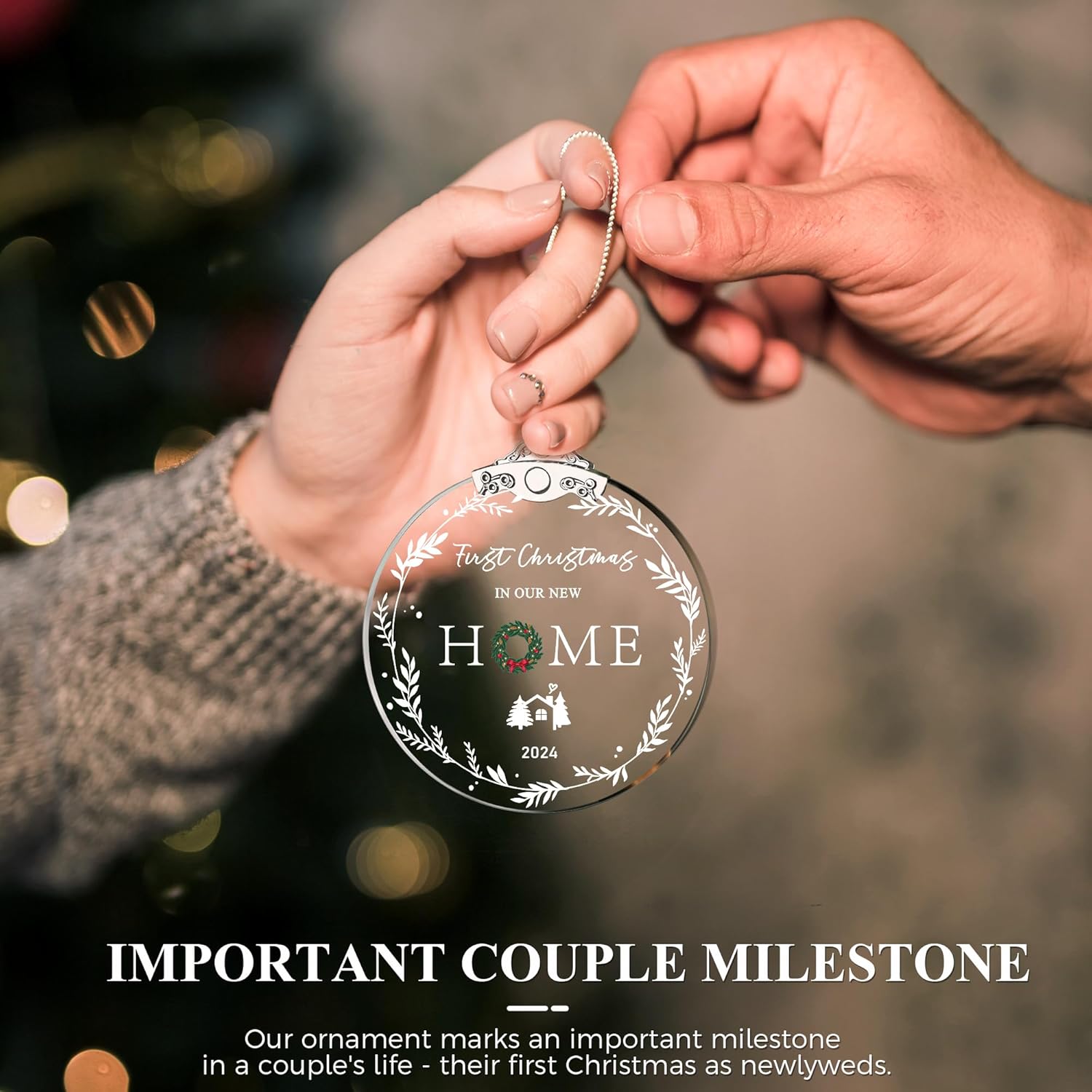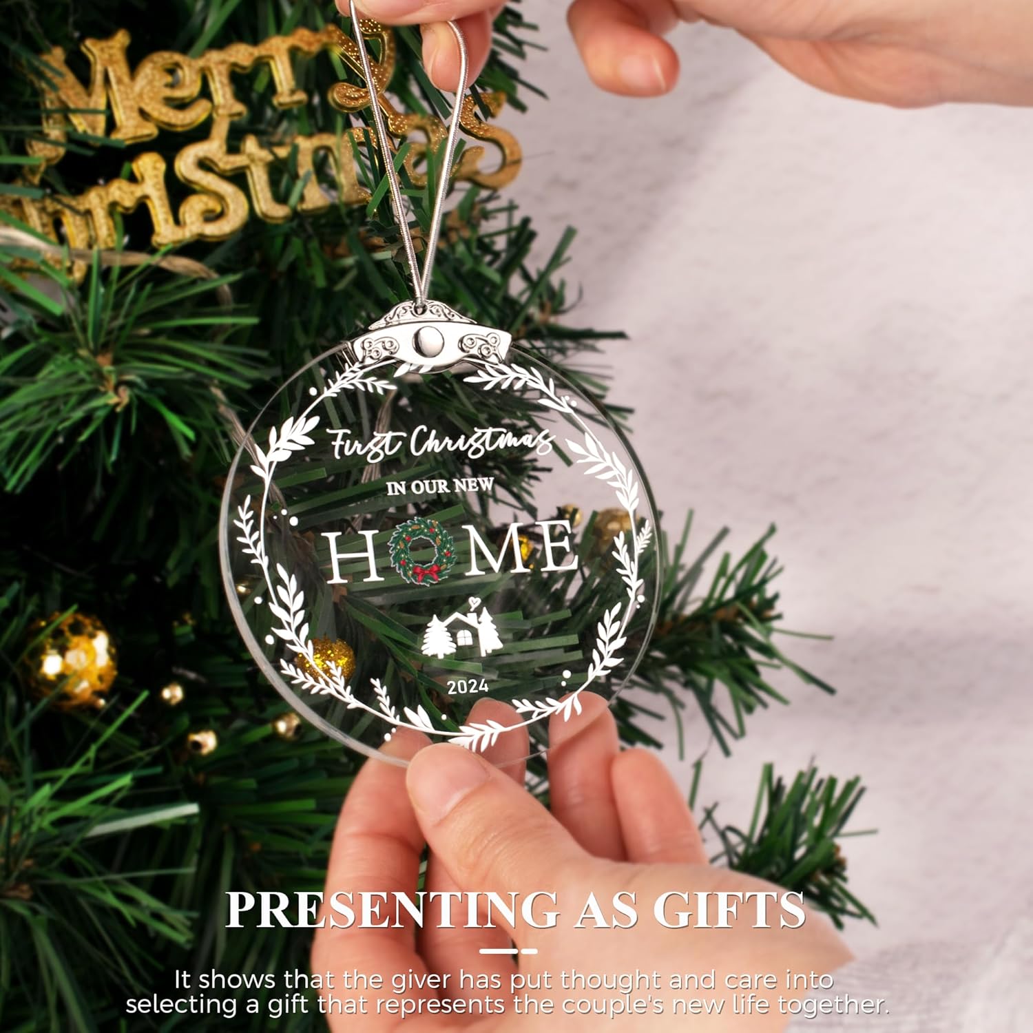 - New Home Ornaments 2024: Your first Christmas in your new home is a magical time of making new memories. The glass ornament printed with "Our First Christmas in New Home" is a perfect way to celebrate the special occasion of moving into a new home and mark the occasion and acknowledge the hard work and effort that went into the move. Letโs hang this unique housewarming decoration on your tree, and remember this special first year forever more