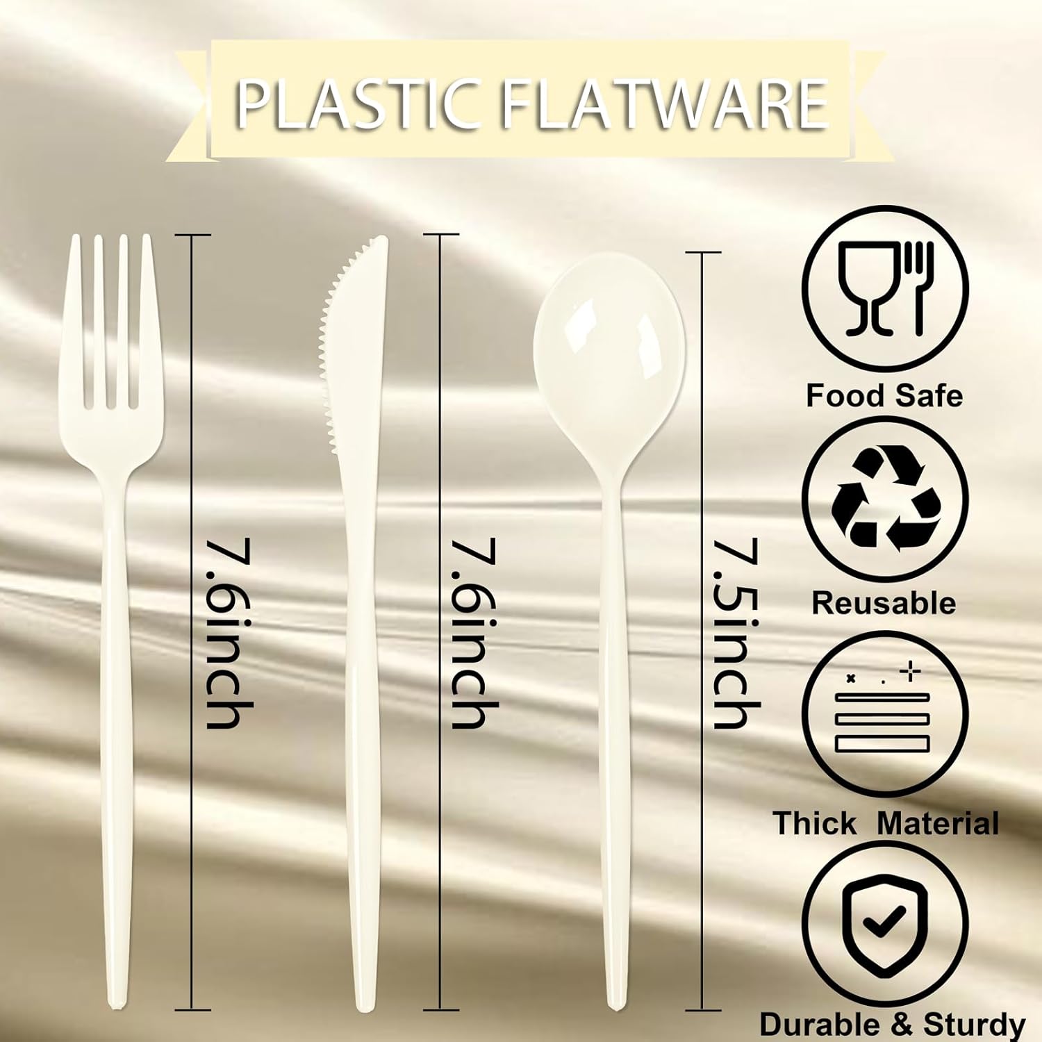 - Great For All Occasions:Elegant plastic cutlery adds some style to your Dinner,Mother's day,Birthday Party,Wedding,Christmas,Thanksgiving,New Years Eve and every occasions.Our ivory plastic silverware Heavy Duty turning your party into a glamorous affair.