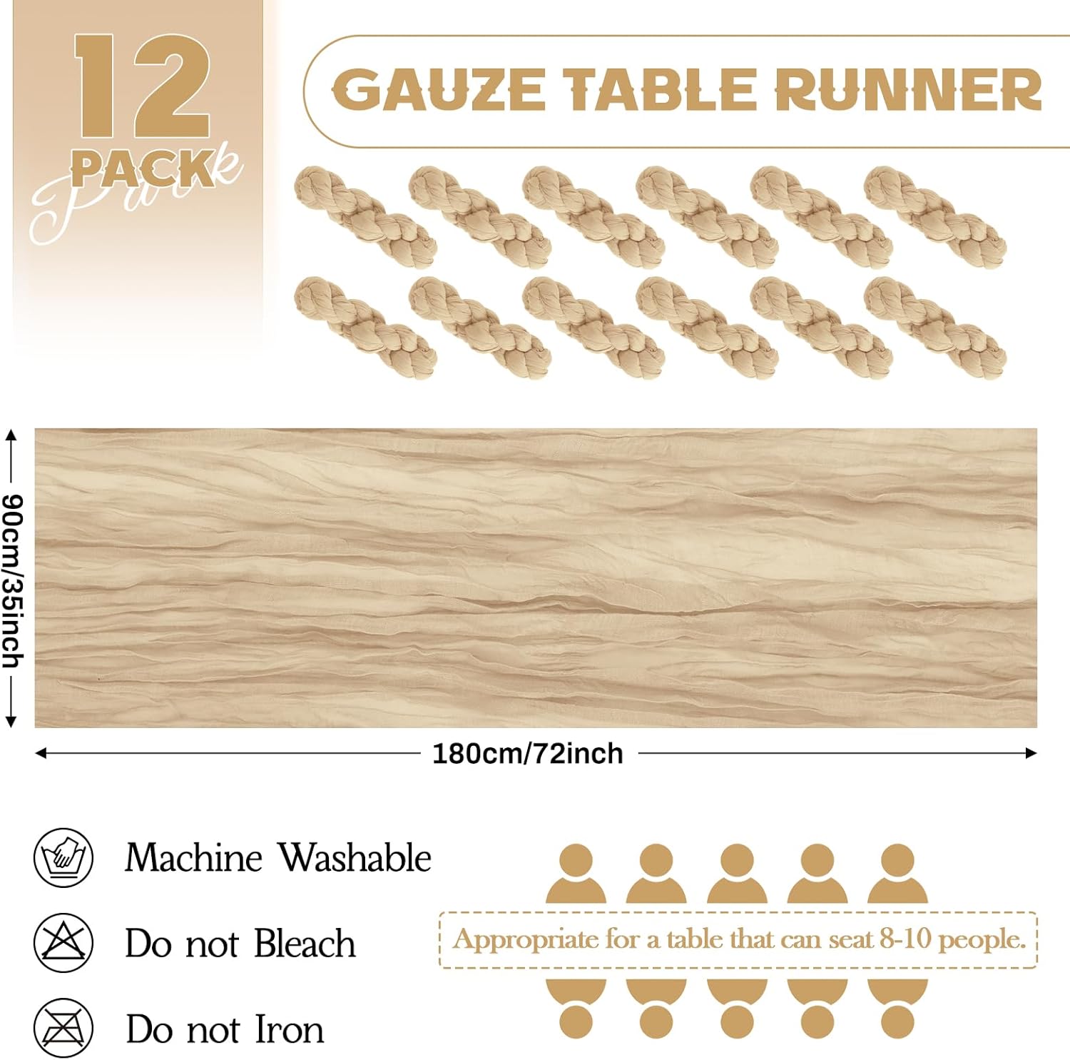 - 【 Package Included】 You will receive 12 piece beige cheesecloth table runners, the quantity is sufficient for your daily use and replacement needs. Cheese cloth table runner measure 35 inches wide and 72 inches long, it's long enough to fit different size tables and chairs. These table runners are skin-friendly as they are environmentally friendly. Aktor store has many different colors for you to choose. Perfect for romantic and elegant party events.