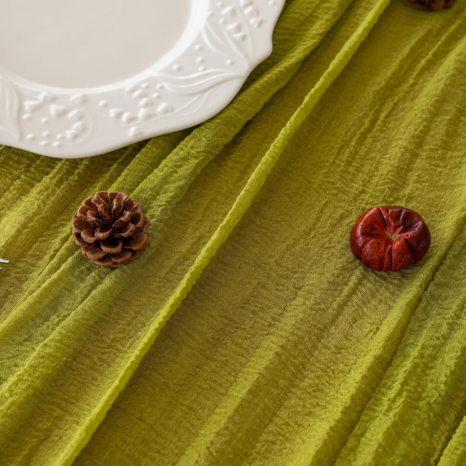 6pcs Moss Green Cheesecloth Table Runner Gauze 120 Inch 10 FT Rustic Boho Cheese Cloth Runner for Wedding Baby Shower Bridal Shower Birthday Party Long Sheer Home Decorations