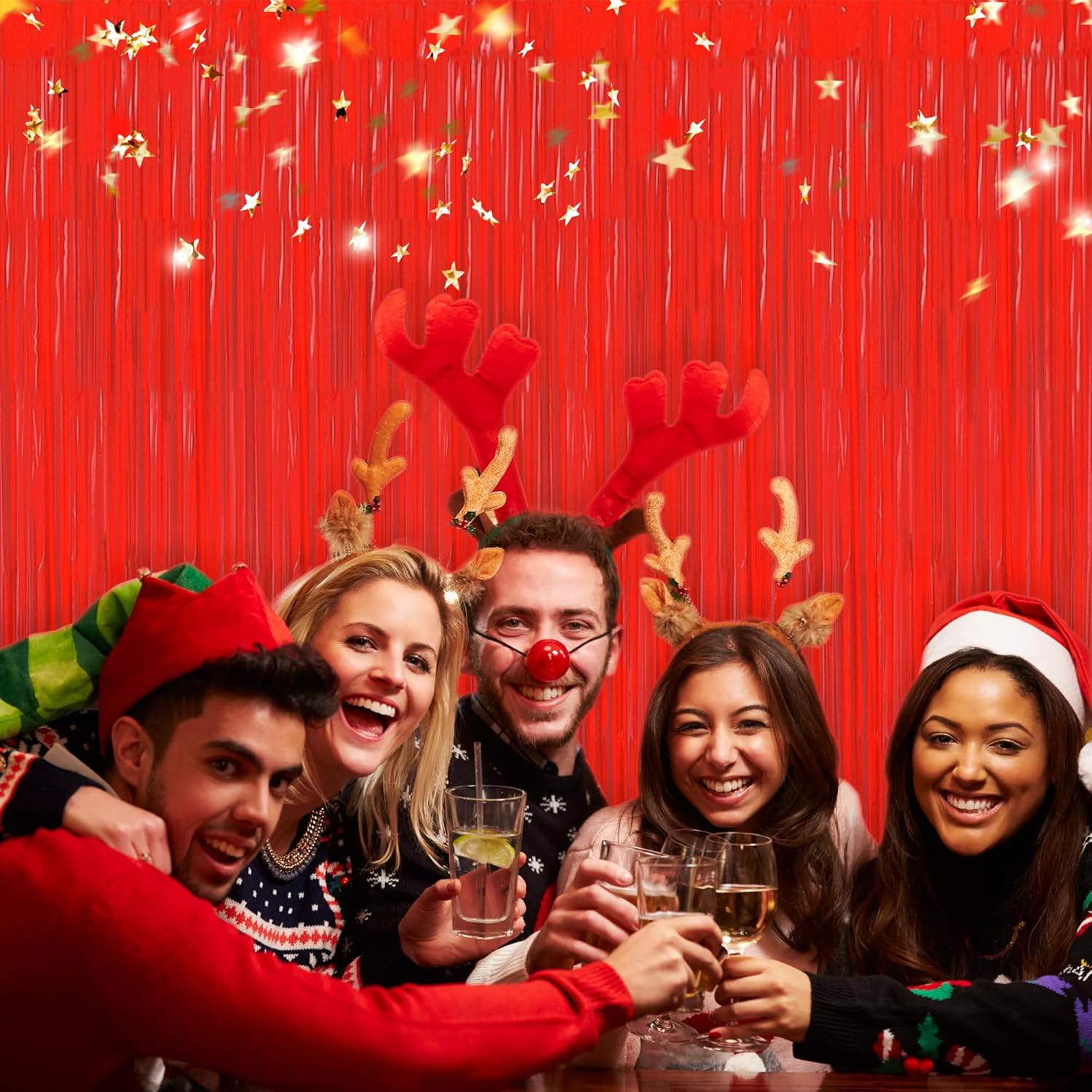 BEISHIDA 2Pcs Red Door Streamer Fluorescent Red Backdrop Blue Foil Fringe Curtains Tinsel for Birthday Baby Shower Halloween Backdrop Wedding Party Decoration (3.28 ft x 6.56 ft)