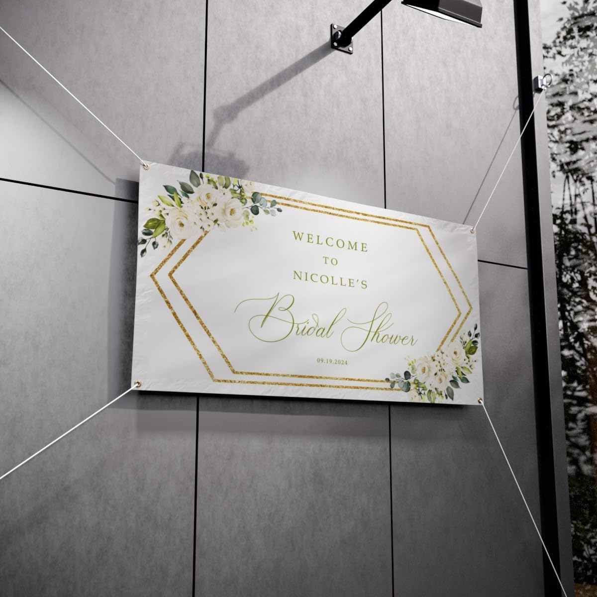 Personalized Bridal Shower Banner, Pastel Rainbow, 12x24 Inches, Wall Mount, Girls