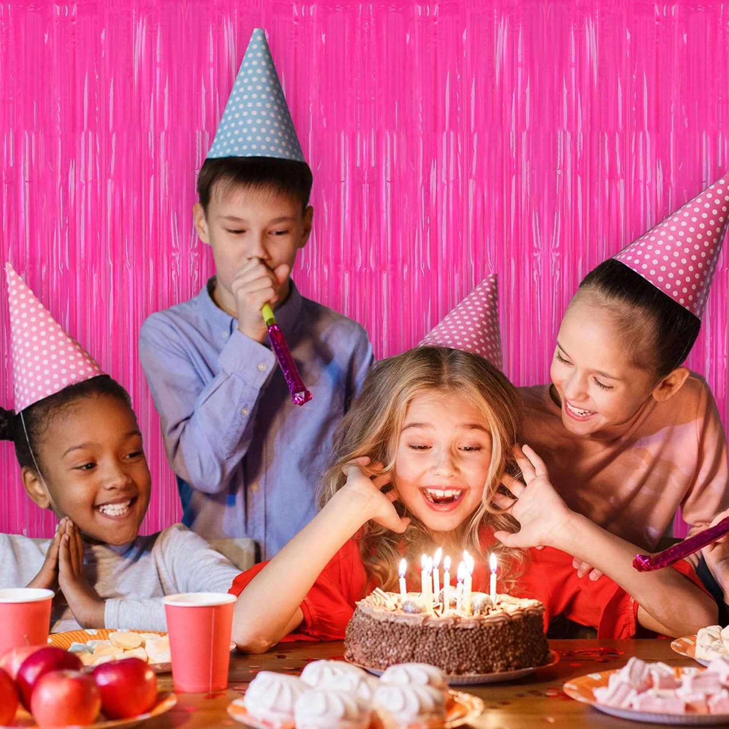 BEISHIDA 2Pcs Hot Pink Door Streamer Fluorescent Hot Pink Backdrop Blue Foil Fringe Curtains Tinsel for Birthday Baby Shower Backdrop Wedding Party Decoration (3.28 ft x 6.56 ft)