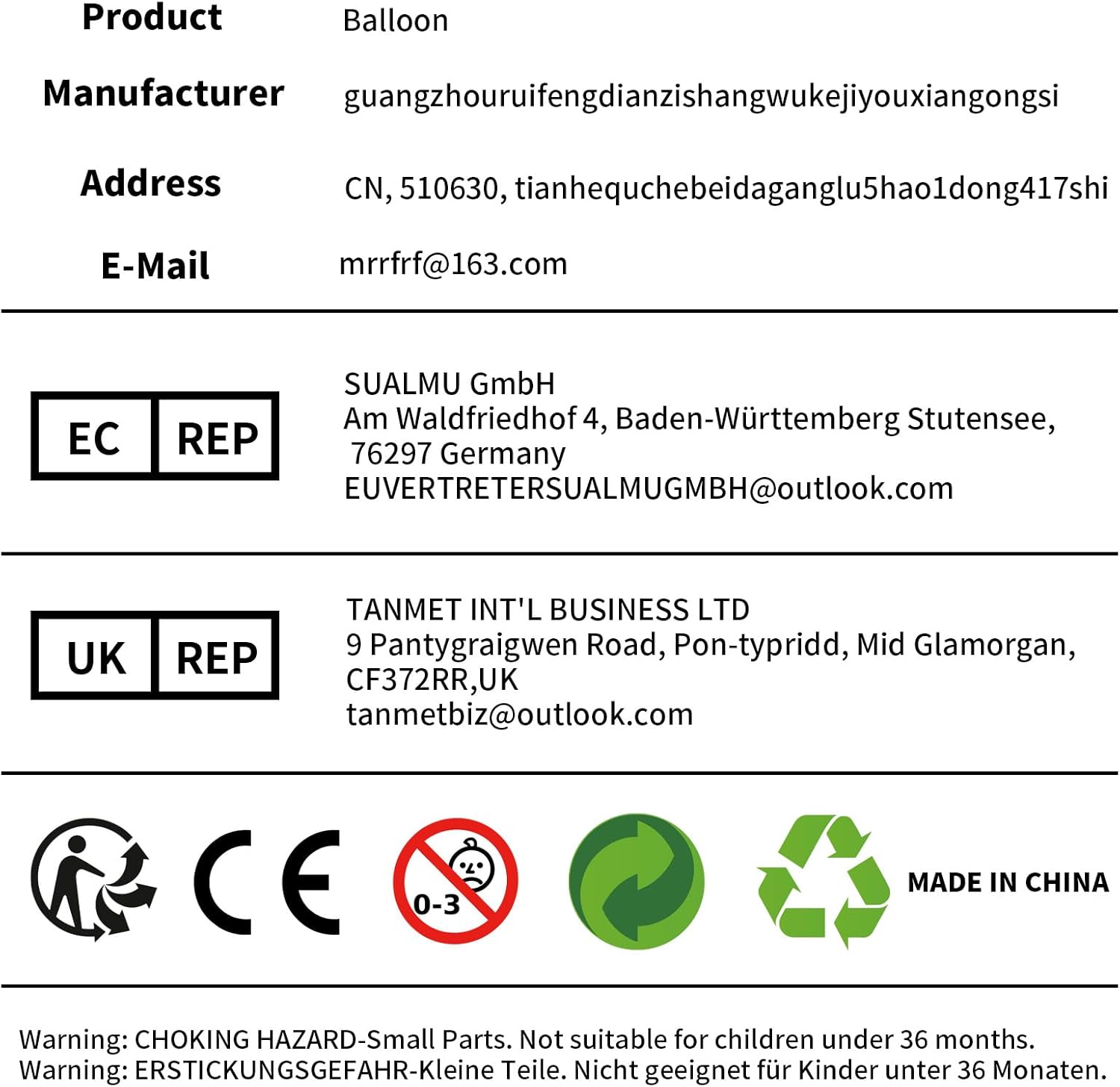 - CPSIA Cautionary Statement : Choking Hazard - Balloon, No Warning Applicable