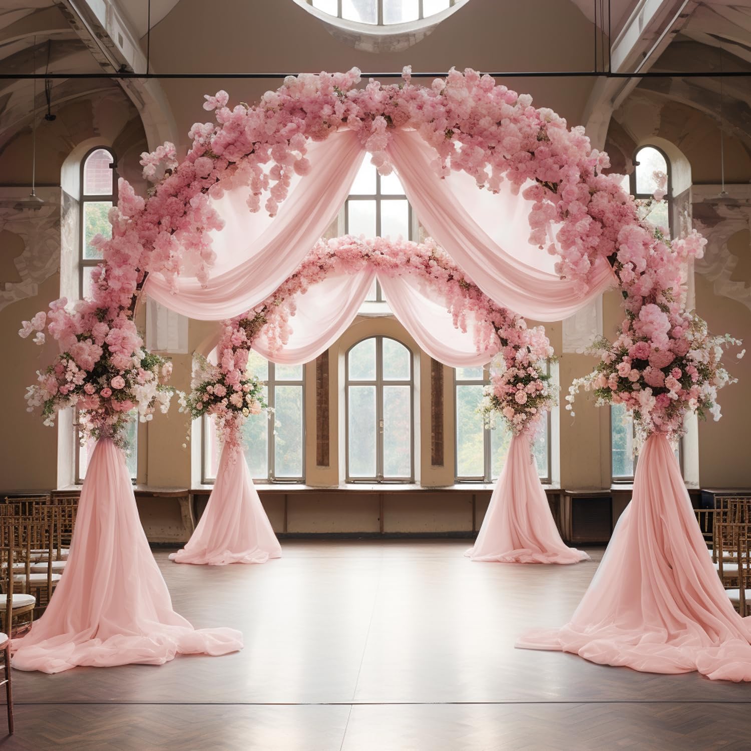 - 【Soft Wedding Drapes】Sheer drapes for wedding arch decor are made of polyester fabric, touch silky soft. These arch draping fabric is lightweight, easy to hang vertically with natural sagging, wrinkle-free, durable and reusable.
