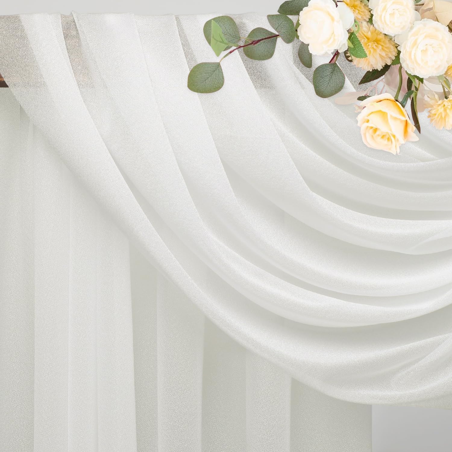 - 【Soft Wedding Drapes】Sheer drapes for wedding arch decor are made of polyester fabric, touch silky soft. These arch draping fabric is lightweight, easy to hang vertically with natural sagging, wrinkle-free, durable and reusable.
