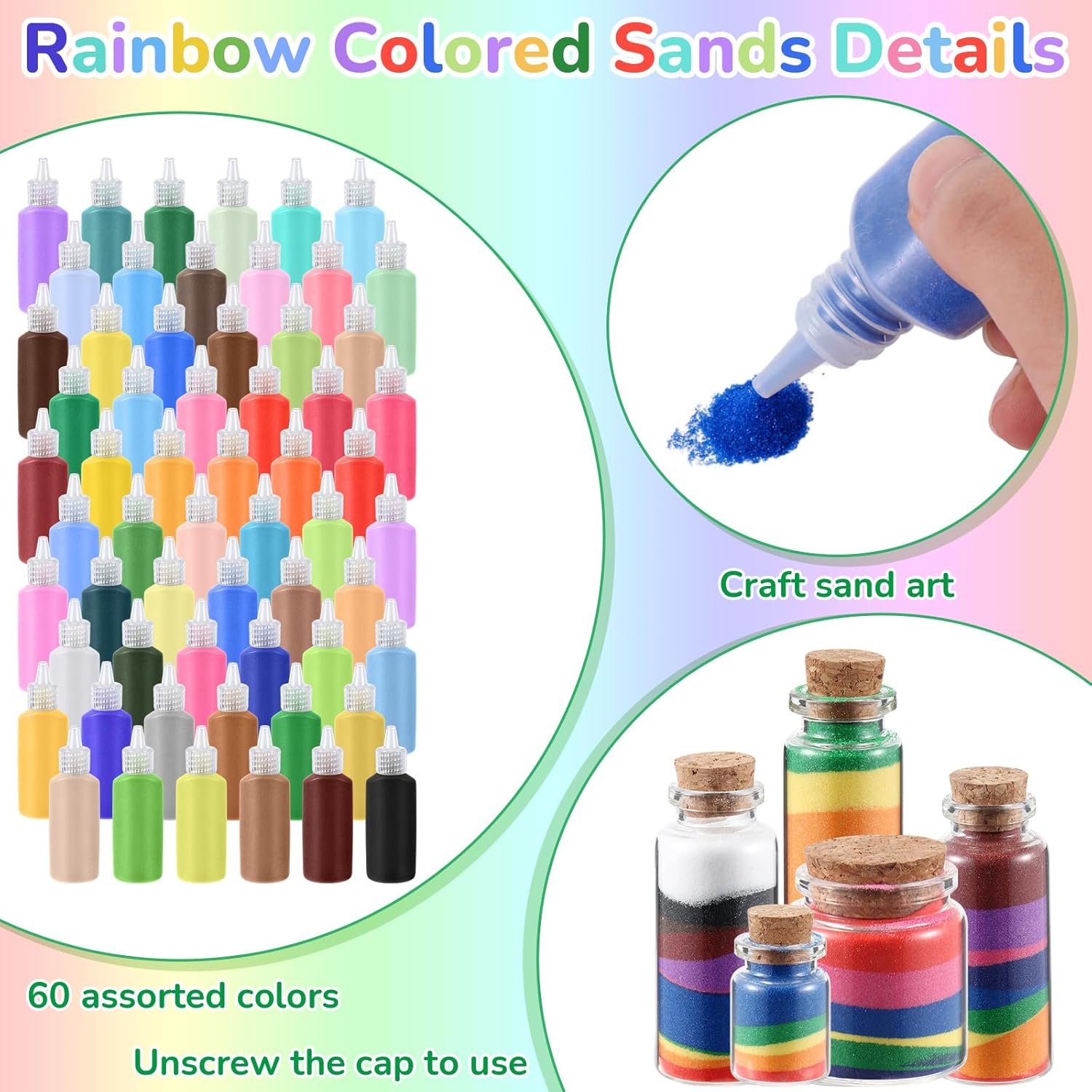 - 60 Vibrant Colors: this sand art kit offers a wide range of 60 different colors, 3 pcs of each color, 180 pcs in total, providing endless creative possibilities for adults alike
