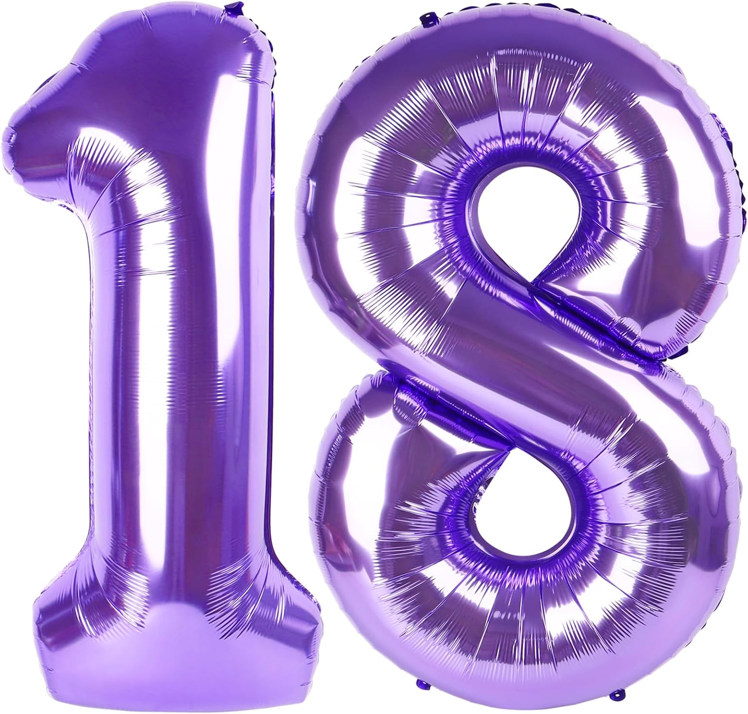 - 1.Elegant Understated Purple Number Balloons:You will receive an uninflated 40 inch 18 balloon number. purple balloon numbers are always the best statement of romance and surprise. Purple balloons symbolize vitality exoticism, adding glamour to birthday parties. Bright metallic purple and huge size make 18 number balloons purple a highlight of special parties. Choose one or more numbers from 0-9 number balloon,and use 18 birthday balloons to create a lively and charming party!
