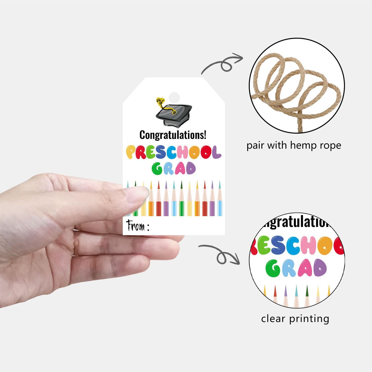 - ·Packing Includes: You will receive 50 pcs graduation gift tags and 50 roots hemp rope, these colorful tag decorations will definitely make your gift more attractive.