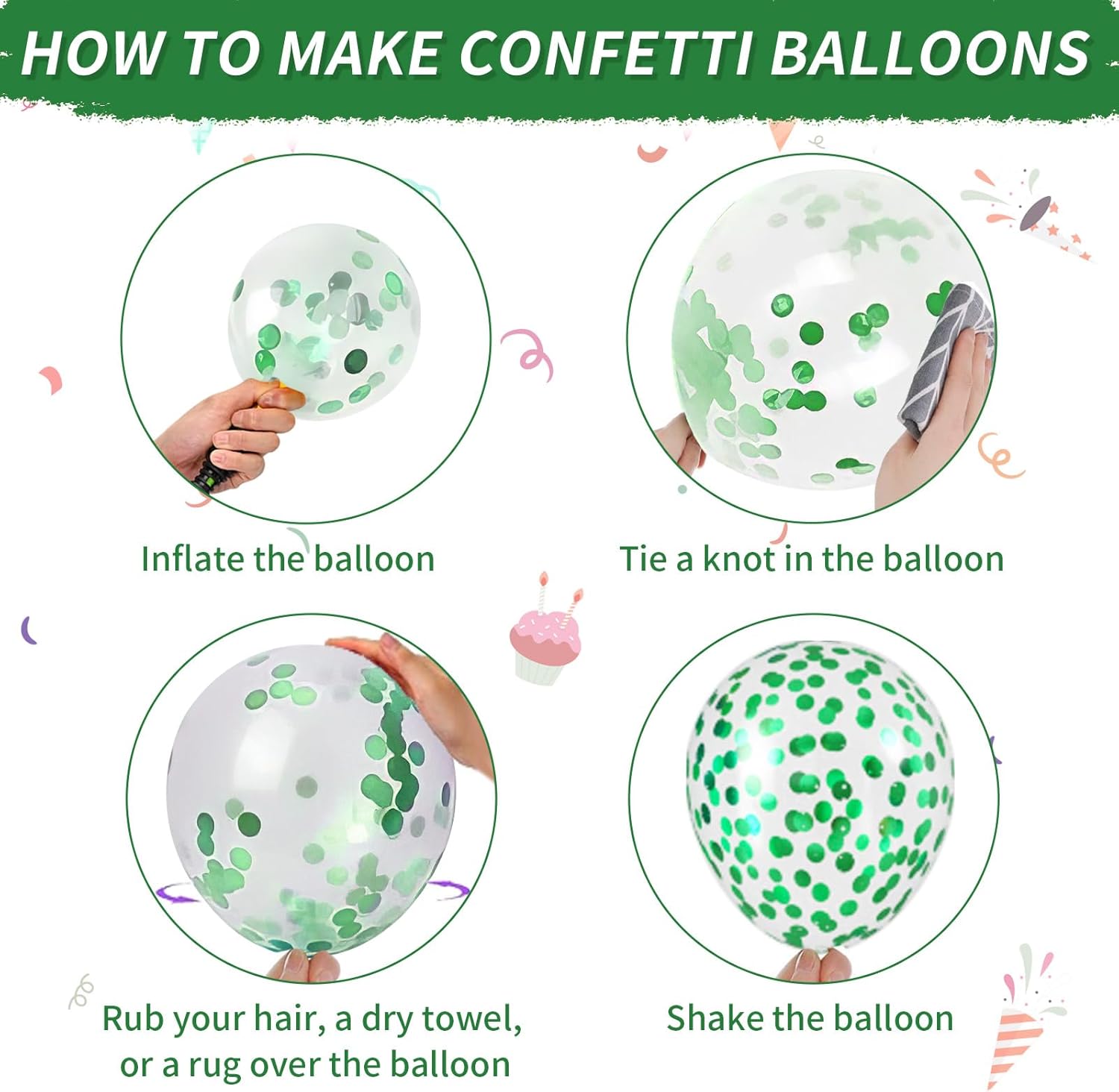 - 【12 Inch Green and Blue Balloons Set】8 x dark green balloons, 5 x metallic light green balloons, 5 x metallic dark green balloons, 7 x retro royal blue balloons, 5 x metallic blue balloons, 5 x green confetti balloons, 1 x silver ribbon balloons, 36pcs in our royal blue and green balloons set. Suitable decorating various occasions, such as boy Birthday Party Baby Shower Anniversary Graduation Wedding.