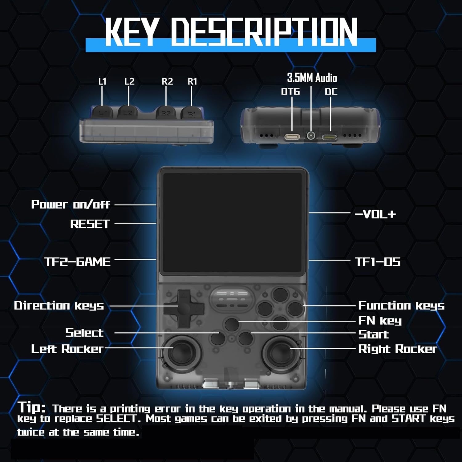 - 【R40S PRO new system】 1.5GHz 64-bit RK3326 CPU, Mali-G31MP dual-core GPU, 8GB RAM; the new operating system provides a more responsive and smoother experience. Pre-installed with 30,000+ games, it supports 45+ mainstream simulators, and the 256GB extended memory allows for adding more games.