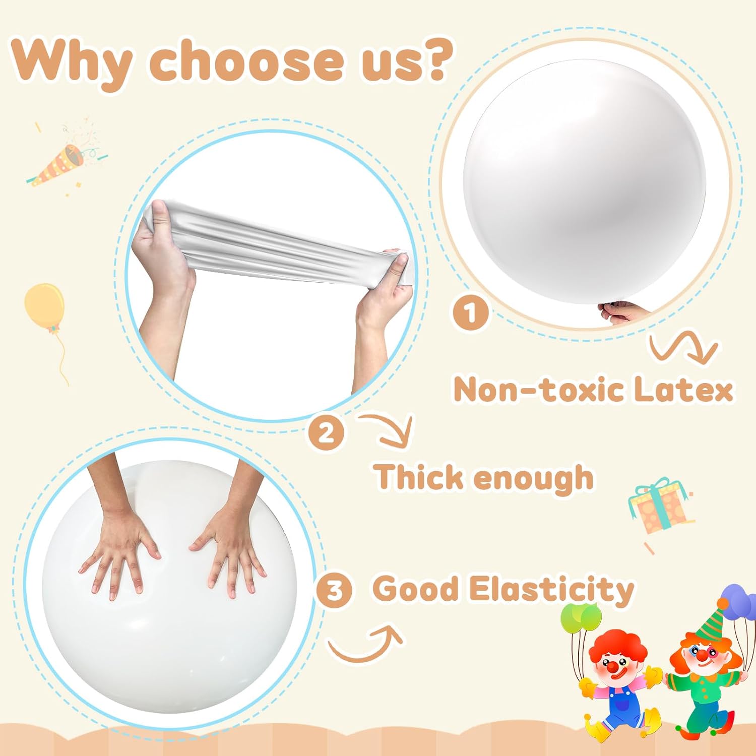- 【Size& Quantity】 Each sets contains 4pcs 36 inch giant White balloons; big balloons 36inch are safe ,heavy thick, bouncy and Eco-friendly latex material which is durable and long-lasting quality ,these big round balloons Thicker and much strong than typical balloons for longer lasting fun.