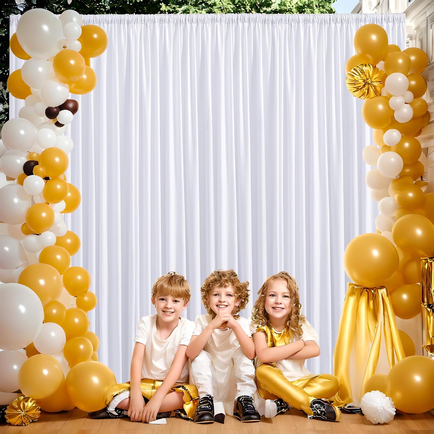 - Easy to Hang - Both sides and bottom of the white backdrop drapes have a full seam with a clean-cut finish. The 4-inch rod pocket at the top made the white drapes for backdrop more easier to hang on a photo backdrop stand, arch backdrop stand or balloon arch stand.