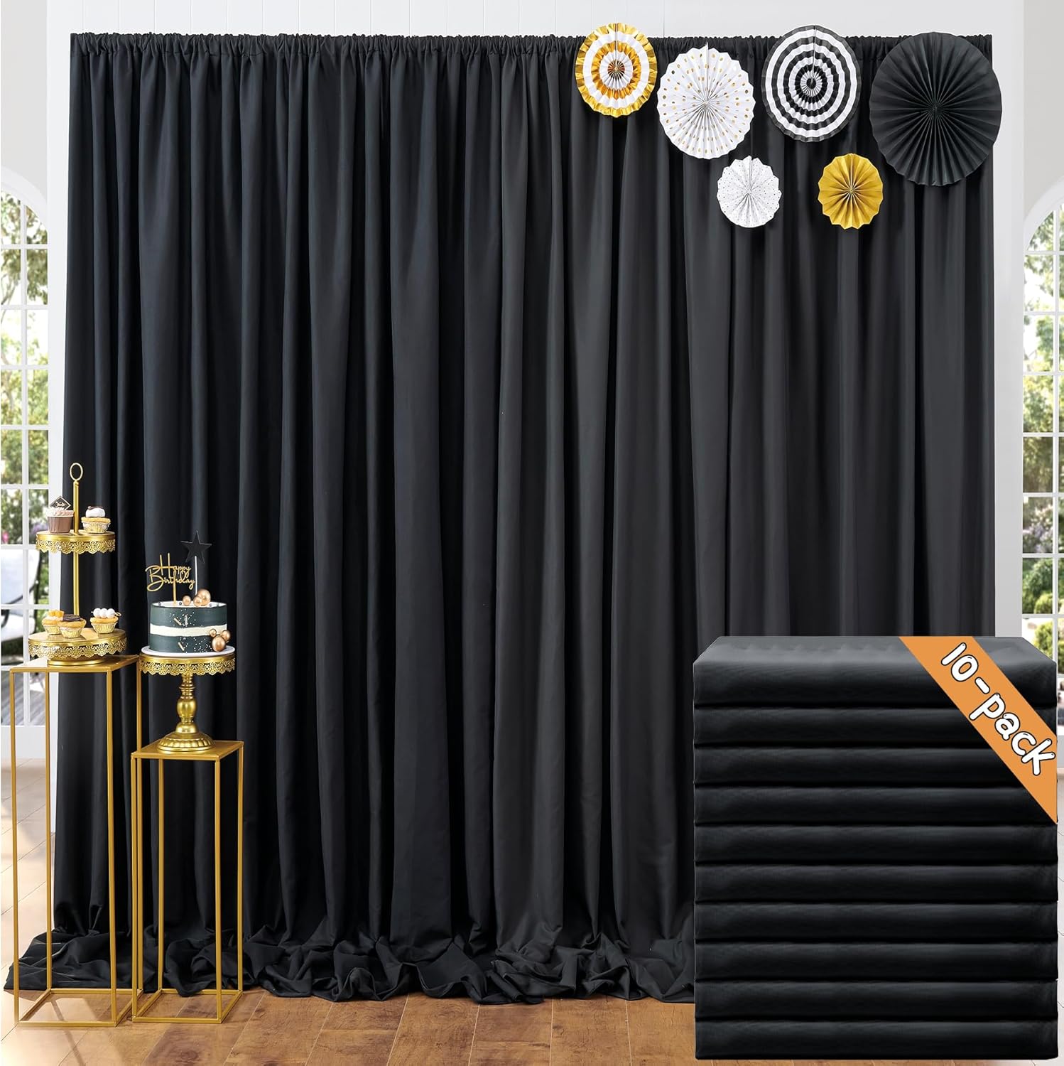 - Wide Compatibility - Black drapes backdrop are perfect for birthday parties, wedding, reception, baby shower,baptism,graduation, catered presentations, bridal shower, candy buffets, dessert tables, photobooth, photoshoot, home decoration drapes backdrops.Used as drape for pipe and drape system also.