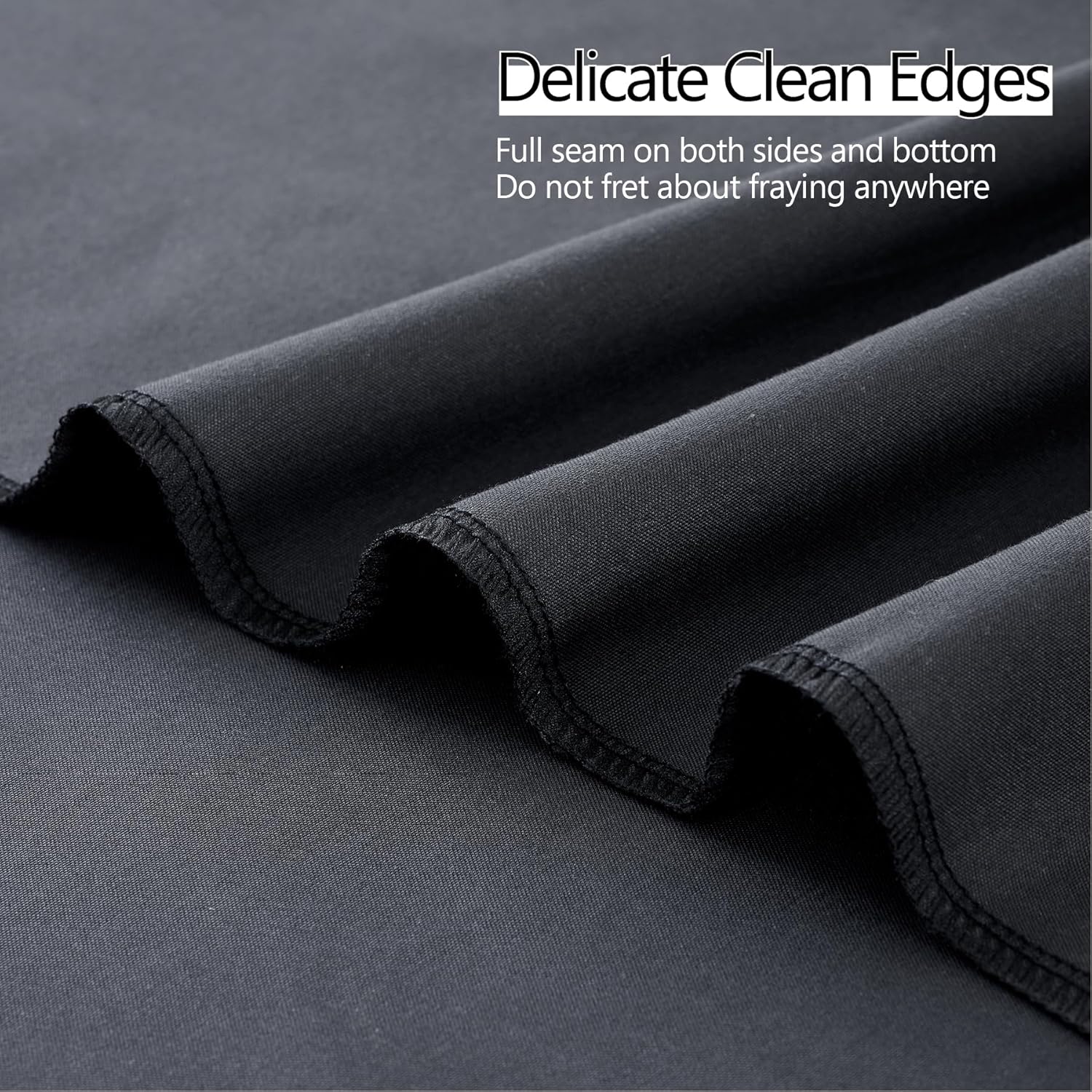 - Easy to Hang - Both sides and bottom of the black backdrop drapes have a full seam with a clean-cut finish. The 4-inch rod pocket at the top made the drapes backdrop more easier to hang on a photo backdrop stand, arch backdrop stand or balloon arch stand