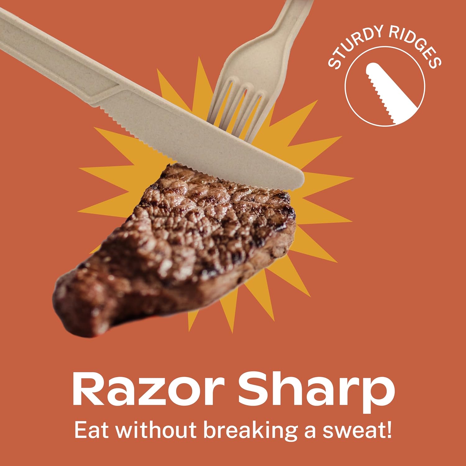 CORAL Light Brown 100% Compostable Forks - 400 Heavy Duty Forks (7.0 inch) - Break Resistant with Smooth Edges, Ocean Friendly Alternative to Plastic Silverware - Biodegradable & Disposable Forks