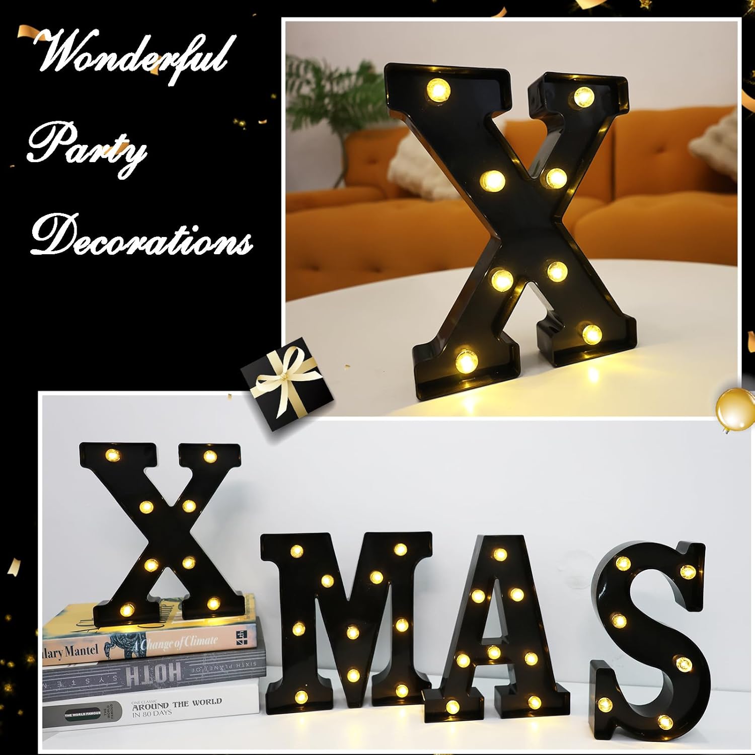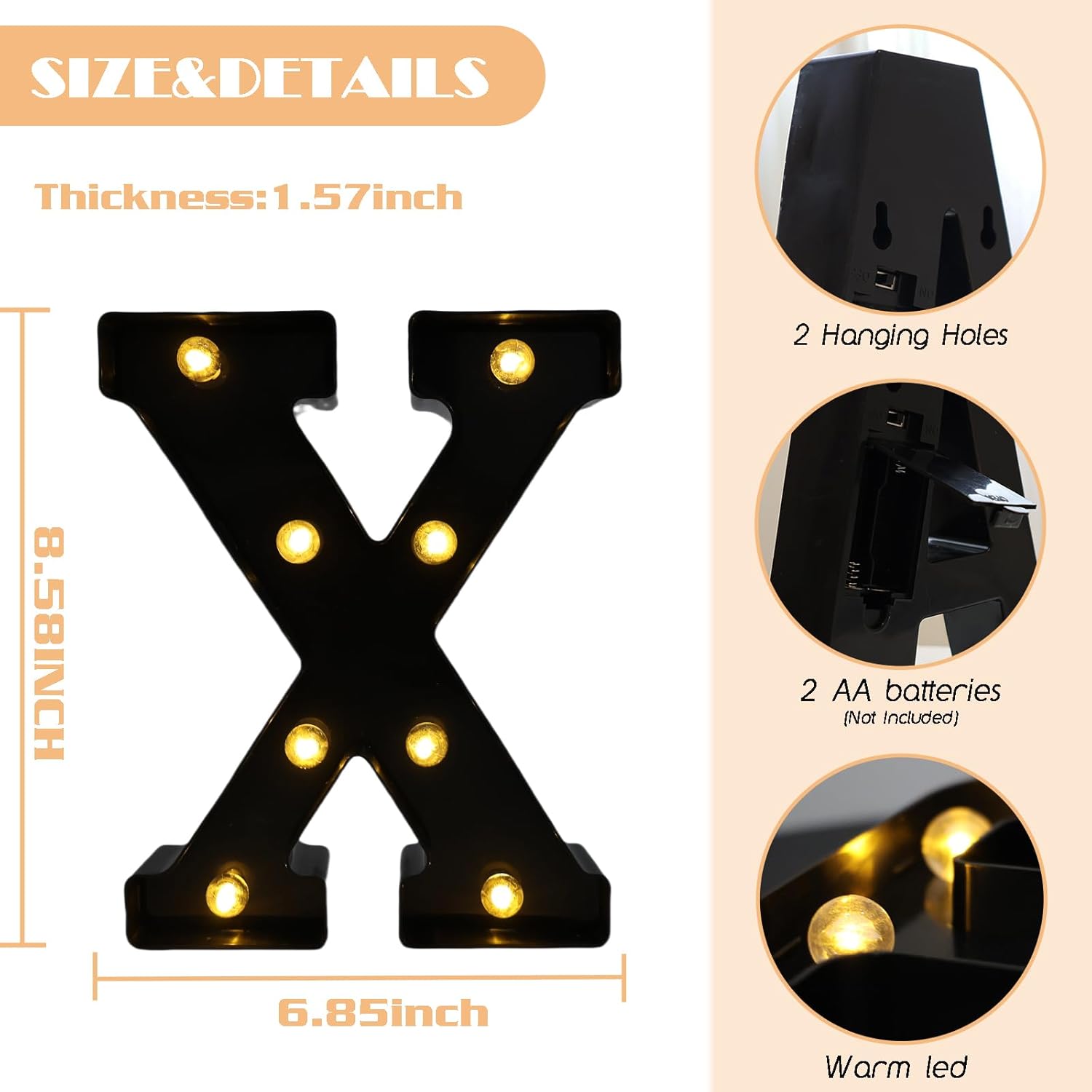 - 【Small Light-Up Letters】Size:1.57"D x 6.85"W x 8.58"H. Our black light up letters are made with high-quality sturdy and smooth plastic materials, which are built to last, are lightweight, and are reusable. Long-term use is not hot. Epitaxial LED chip gives off a bright warm white glow, very cute and stylish without any flickering or glaring.