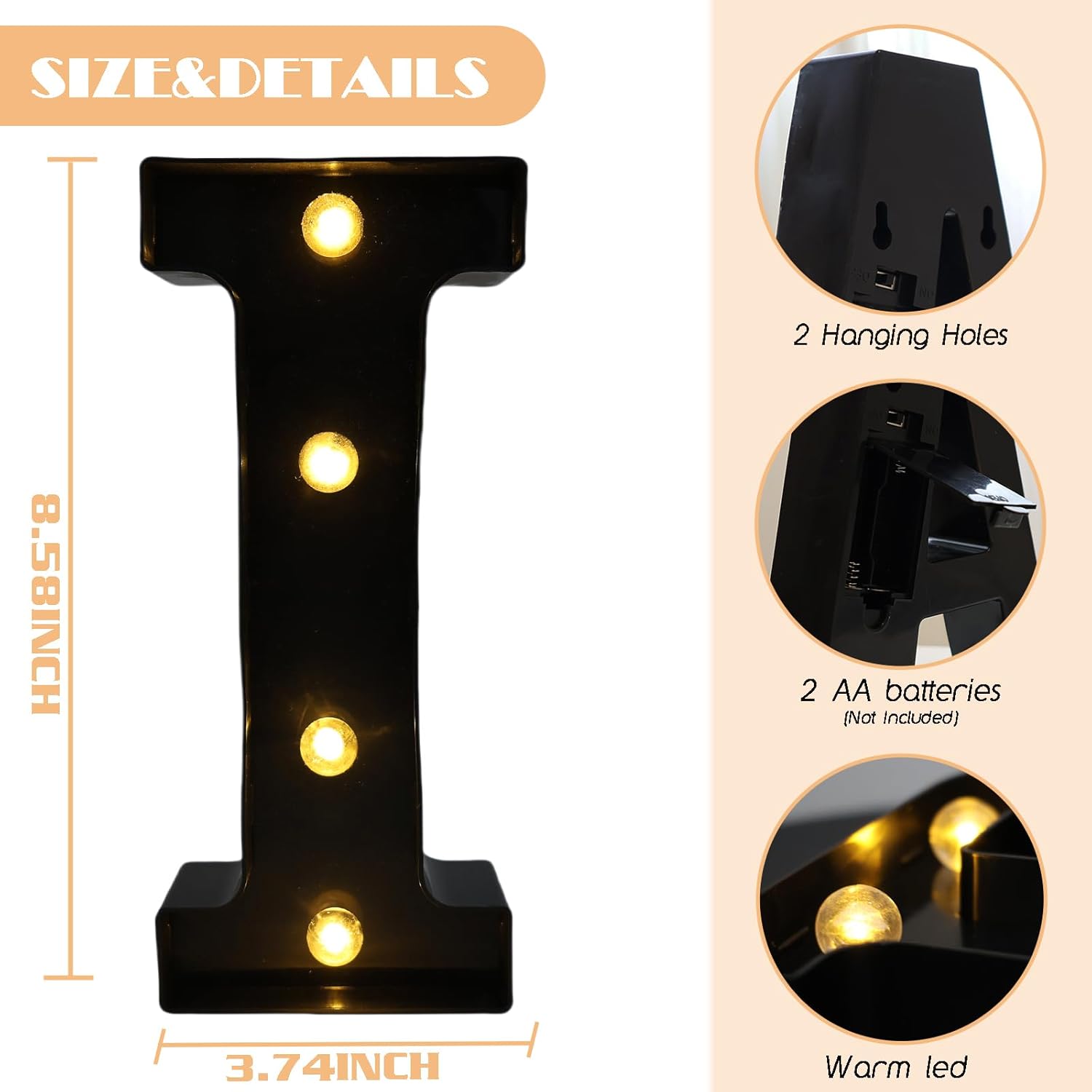 Led Marquee Letters, 8.58 Inch Black Light Up Letters, Small Led Letter Lights, Battery Powered Lighted Letterfor Table, Party, Birthday, Christmas Decor (Black, Letter I)
