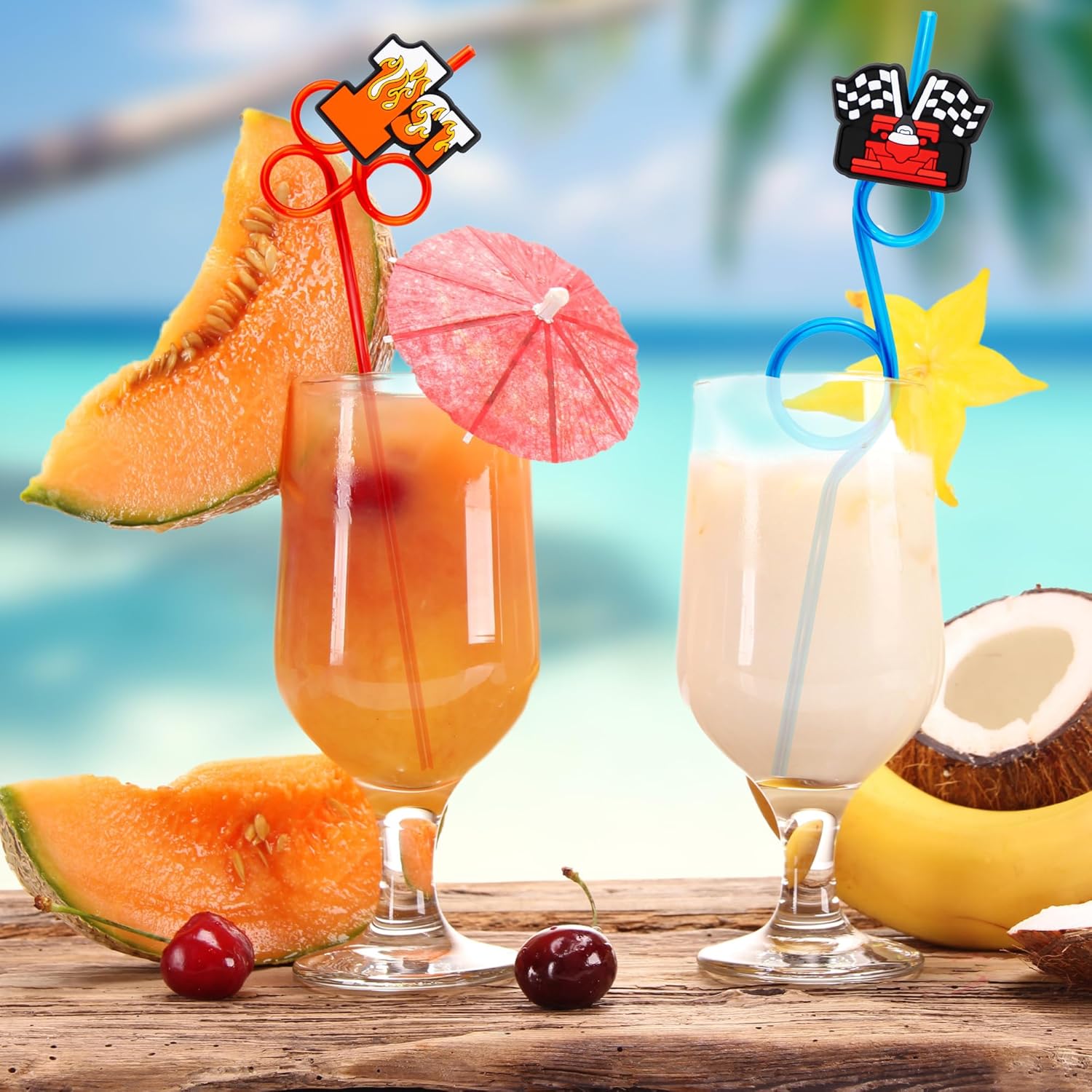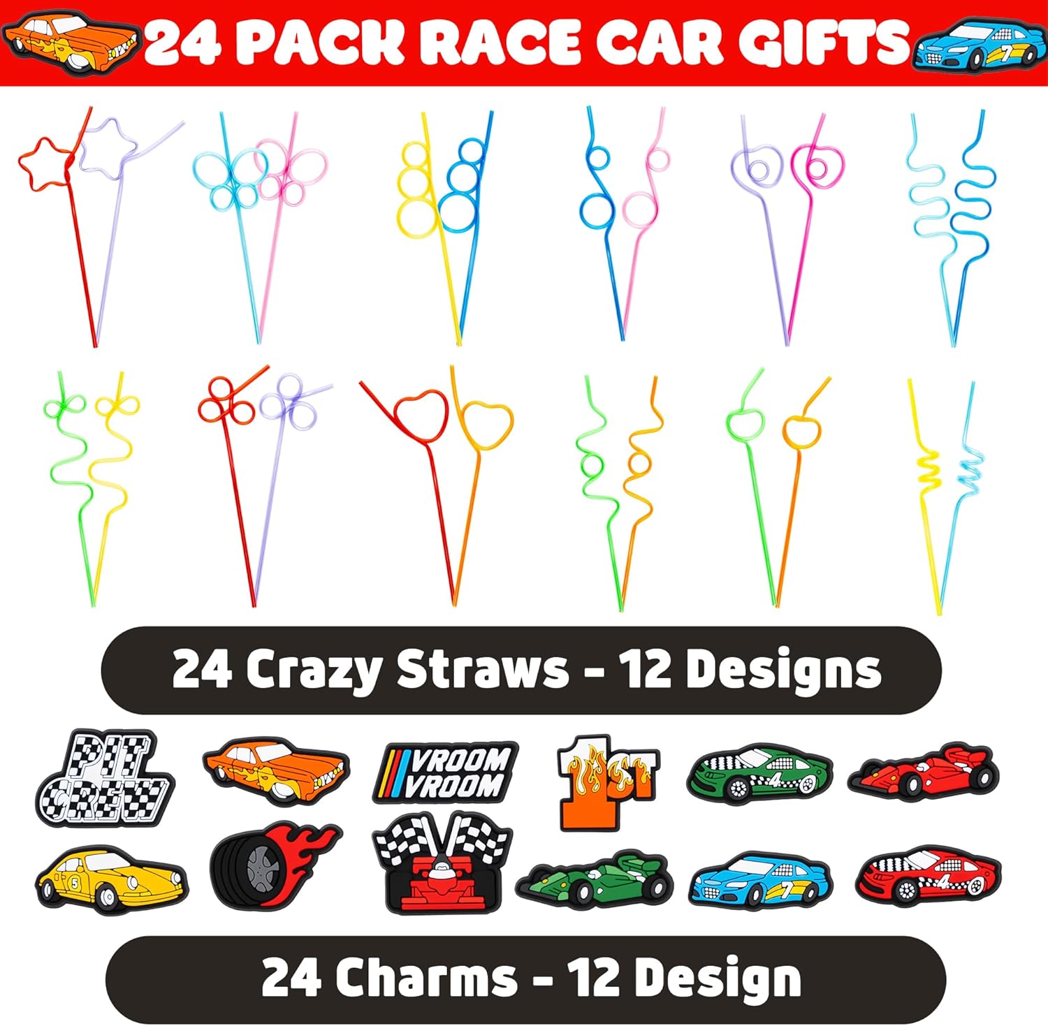 - 🏎️THE PERFECT RACE CAR THEMED PARTY GIFT: Our birthday supplies set INCLUDES 24 SET Race Car Reusable Crazy Straws Drinking Silly Straws (With 24 different vivid charm designs) + 2PCS STRAW CLEANING BRUSHES, which adds some fun to your party or Race Car-themed event with these party favors! Perfect for decorating drinks and adding a touch of whimsy to your party decorations.