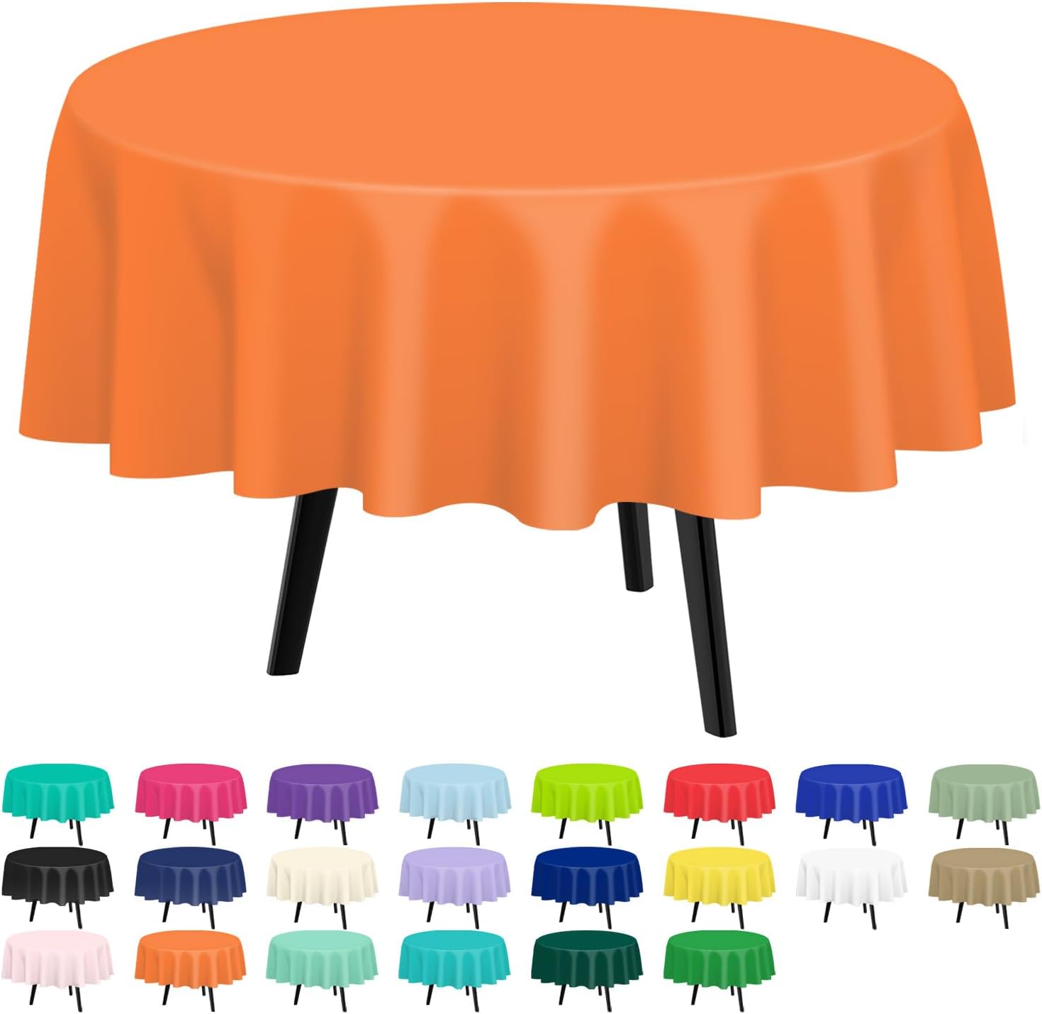 QIKSION Orange Round Tablecloth 6 Pack, 84 Inch Plastic Table Cover Disposable for Parties