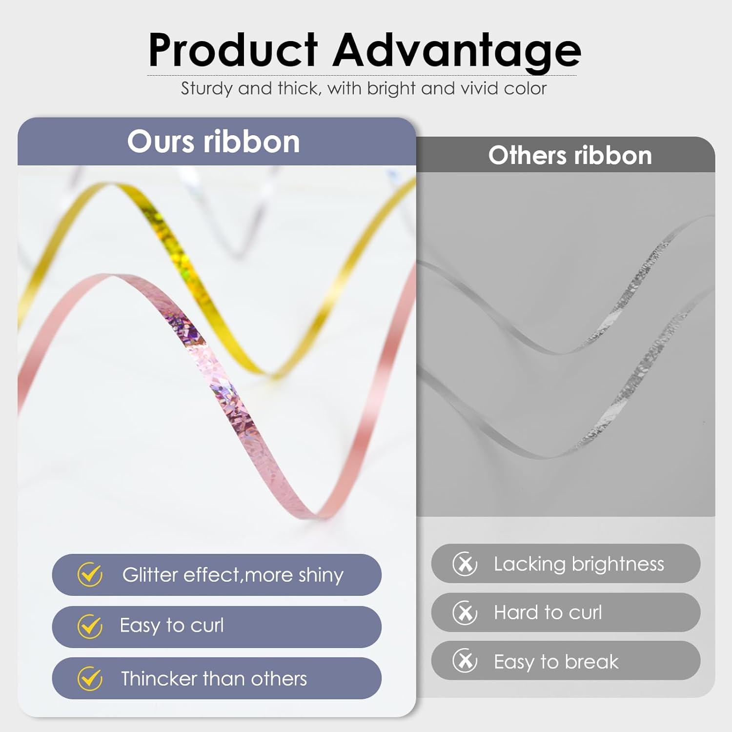 - Durable & High-Grade: The curling ribbon stands 15% stronger, meticulously crafted from advanced materials for prolonged use across numerous events. It shines with captivating holographic hues, elevating the visual appeal.