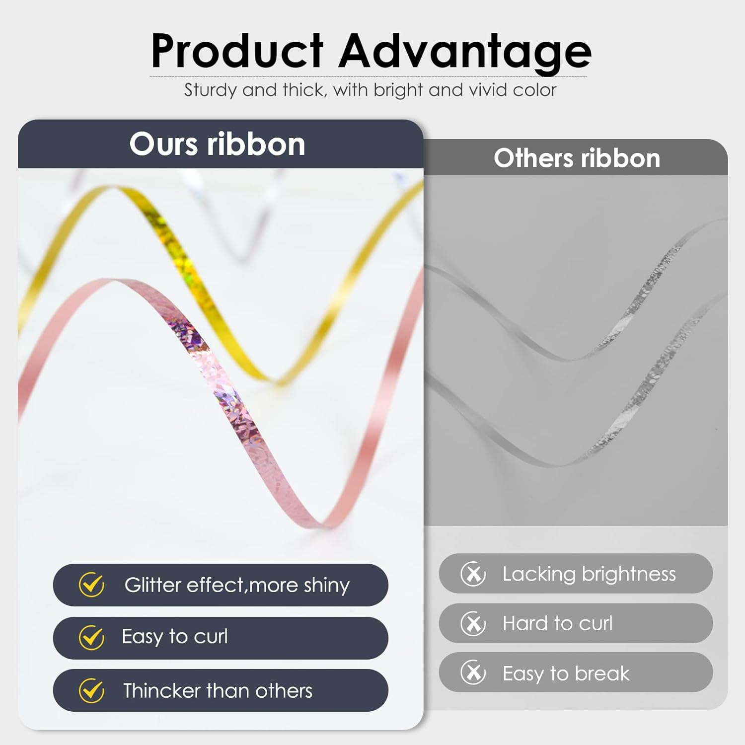 - Durable & High-Grade: The curling ribbon stands 15% stronger, meticulously crafted from advanced materials for prolonged use across numerous events. It shines with captivating holographic hues, elevating the visual appeal.