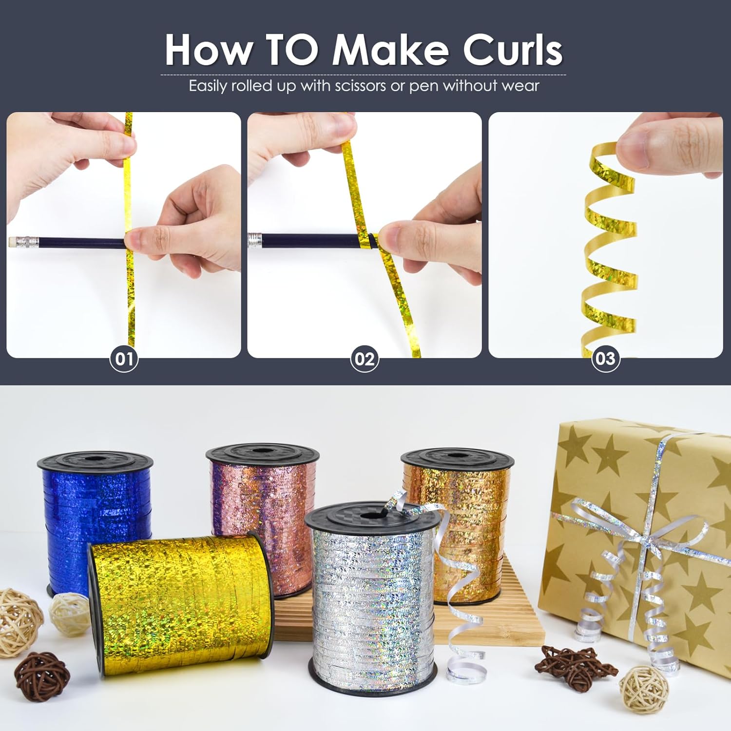 - Easy to Curl: Quickly curl with scissors or wrap around a pen for easy, elegant curls—perfect for decoration, gift wrapping, and crafting projects.