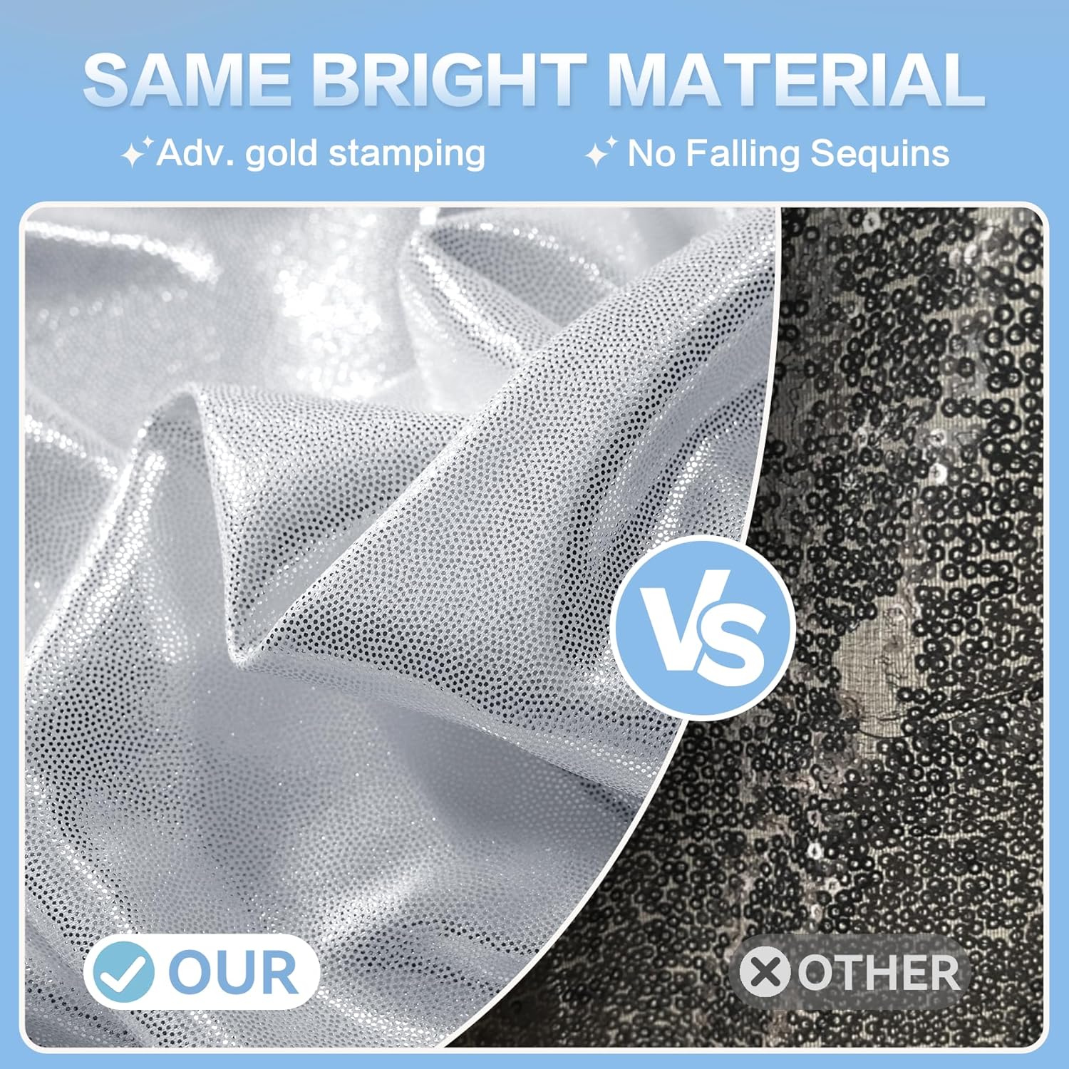 - Premium Craftsmanship: Crafted with advanced hot stamping technology, our soft polyester backdrop features a glittery, luxurious metallic finish with ultra-low light permeability. It ensures a professional, elegant look for photography and events, combining durability with glamour