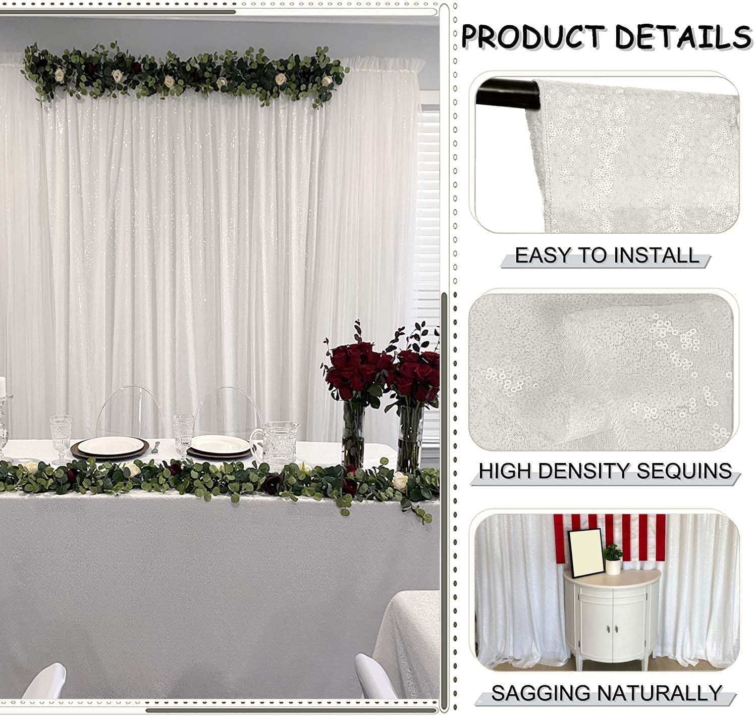 - What You Get: 8x8ft 1 panels White Glitter sequin backdrop curtain with a 3-inch rod pocket for easy hanging.