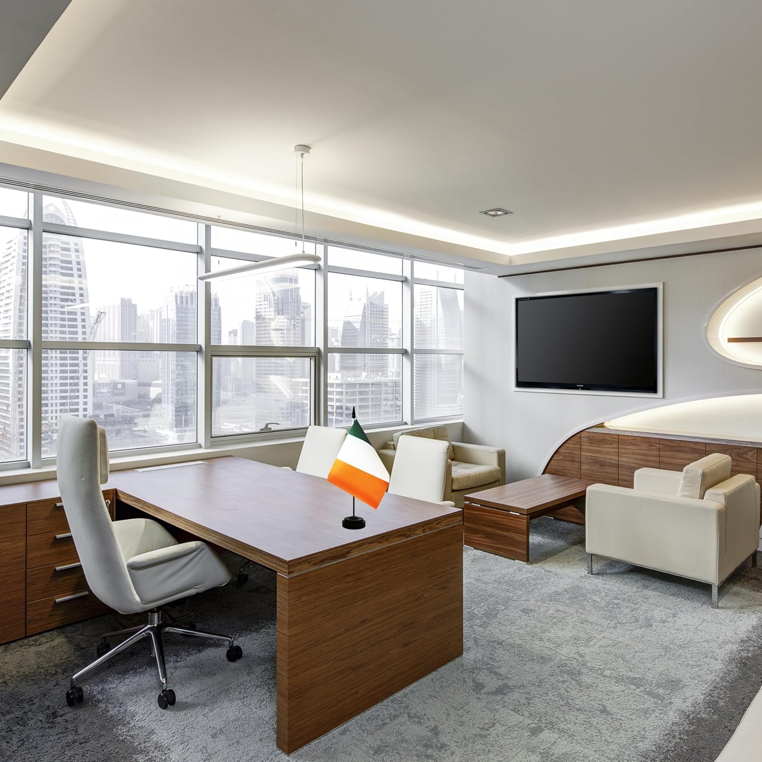 2 Pack Ireland Desk Flag, Irish Table Office Flag with Solid Pole and Stand Base, International Country Flag, Festival Celebration, Classroom Meeting Desktop Decoration (Ireland)