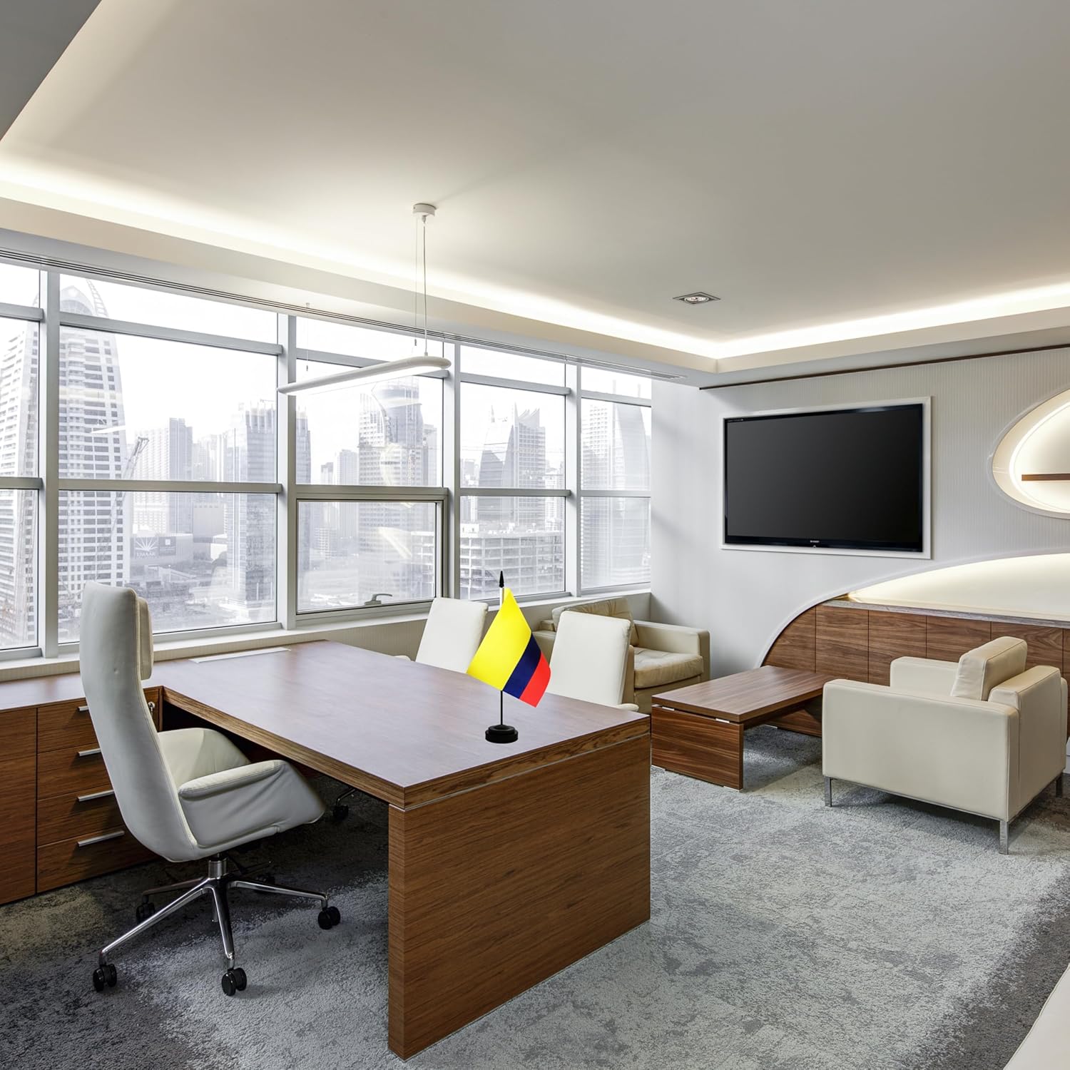 2 Pack Colombia Desk Flag, Colombian Table Office Flag with Solid Pole and Stand Base, International Country Flag, Festival Celebration, Classroom Meeting Desktop Decoration (Colombia)