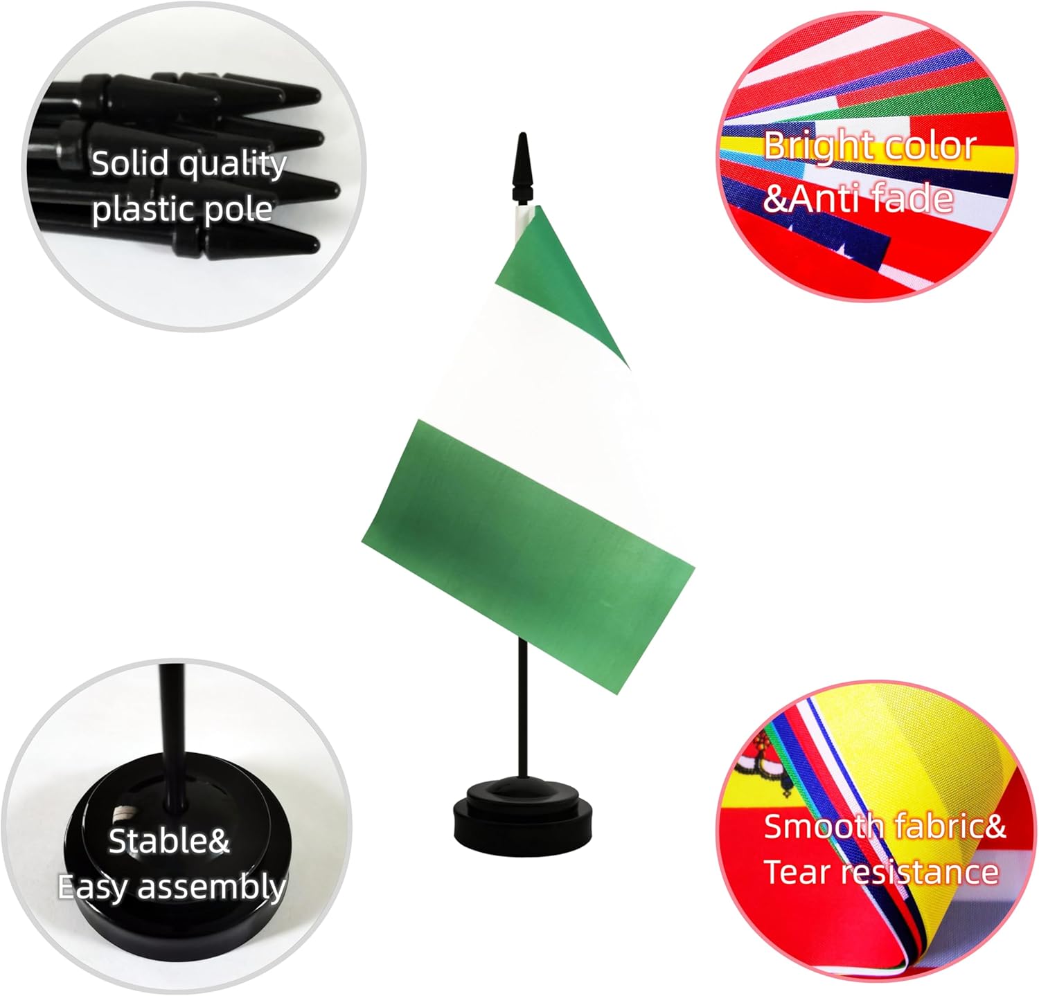 2 Pack Nigeria Desk Flag, Nigerian Table Office Flag with Solid Pole and Stand Base, International Country Flag, Festival Celebration, Classroom Meeting Desktop Decoration (Nigeria)