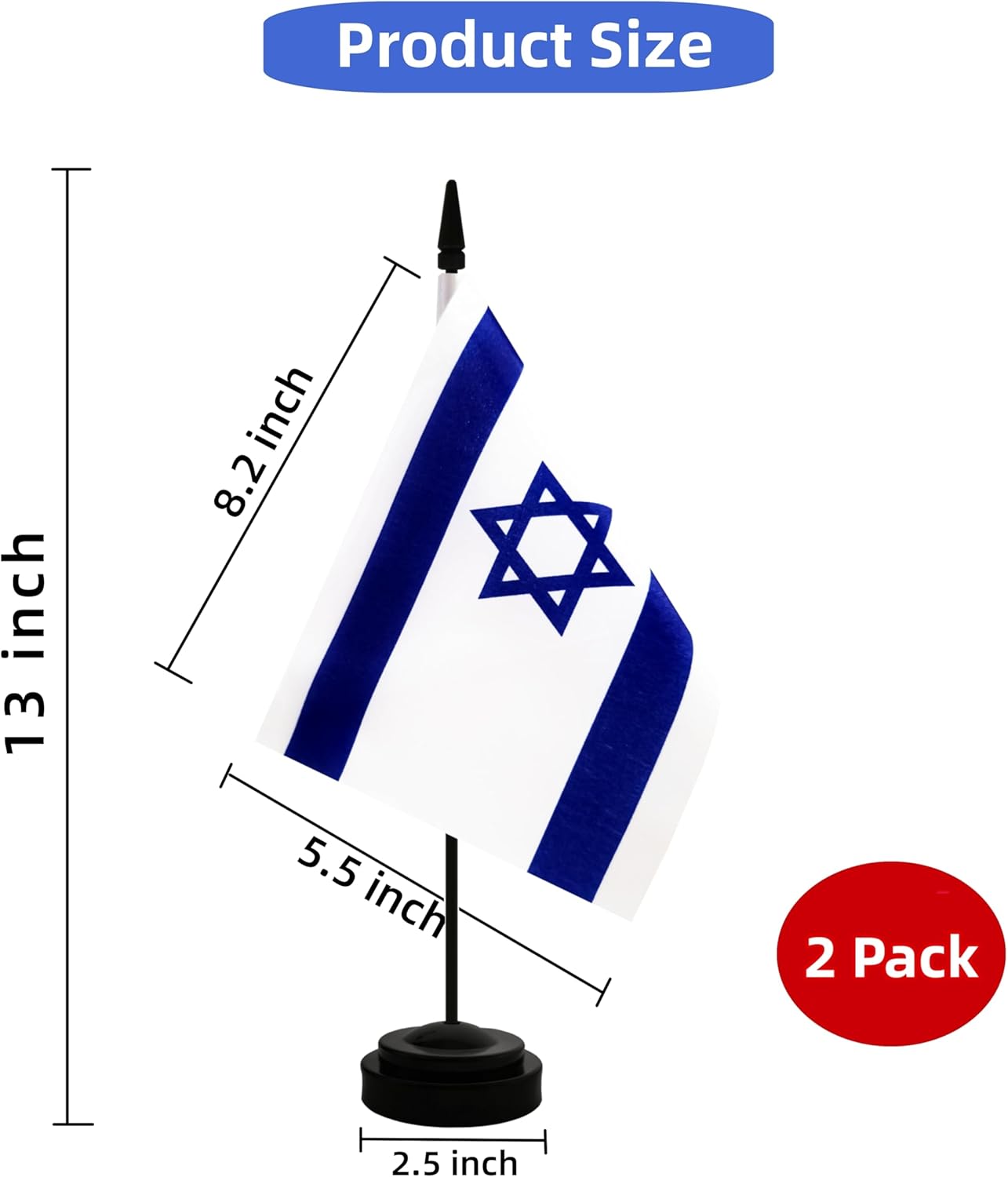 2 Pack Israel Desk Flag, Israeli Table Office Flag with Solid Pole and Stand Base, International Country Flag, Festival Celebration, Classroom Meeting Desktop Decoration (Israel)