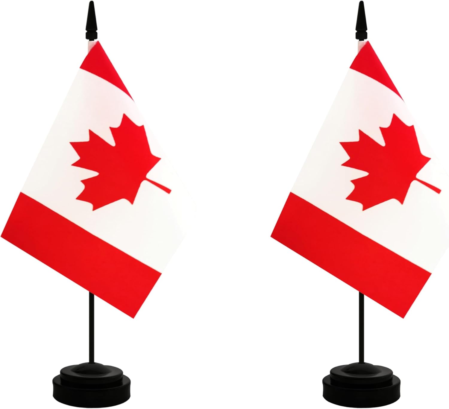 2 Pack Canada Desk Flag, Canadian Table Office Flag with Solid Pole and Stand Base, International Country Flag, Festival Celebration, Classroom Meeting Desktop Decoration (Canada)