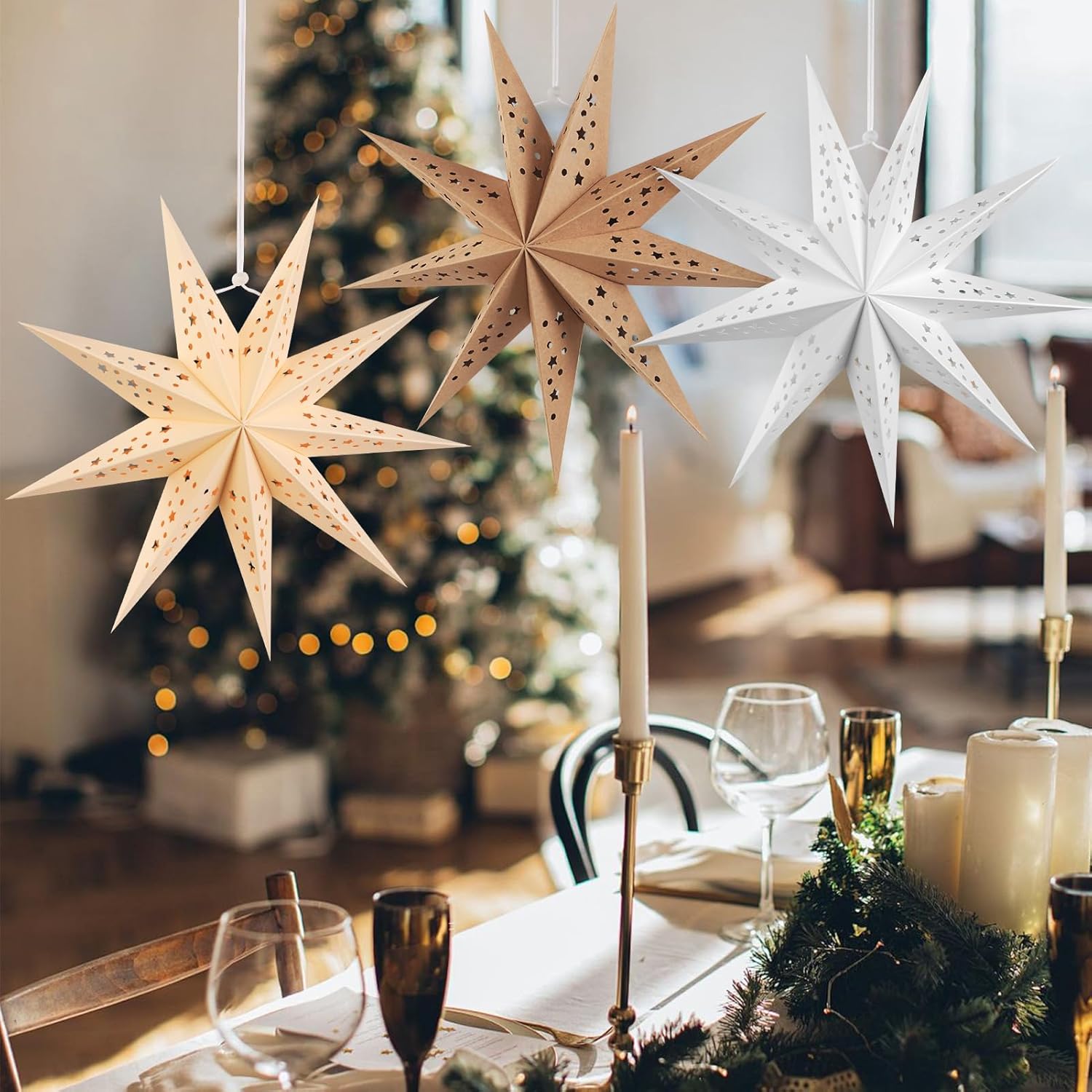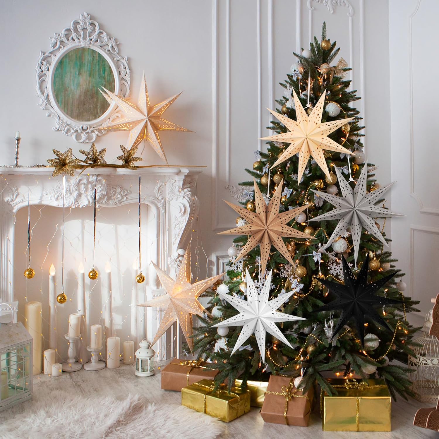 - Exquisite and Unique Design:Nine-pointed openwork star decorations create a unique and perfect space. Each star is meticulously cut with an openwork design. The unique nine-pointed shape becomes the focal point of party events and holiday decorations.