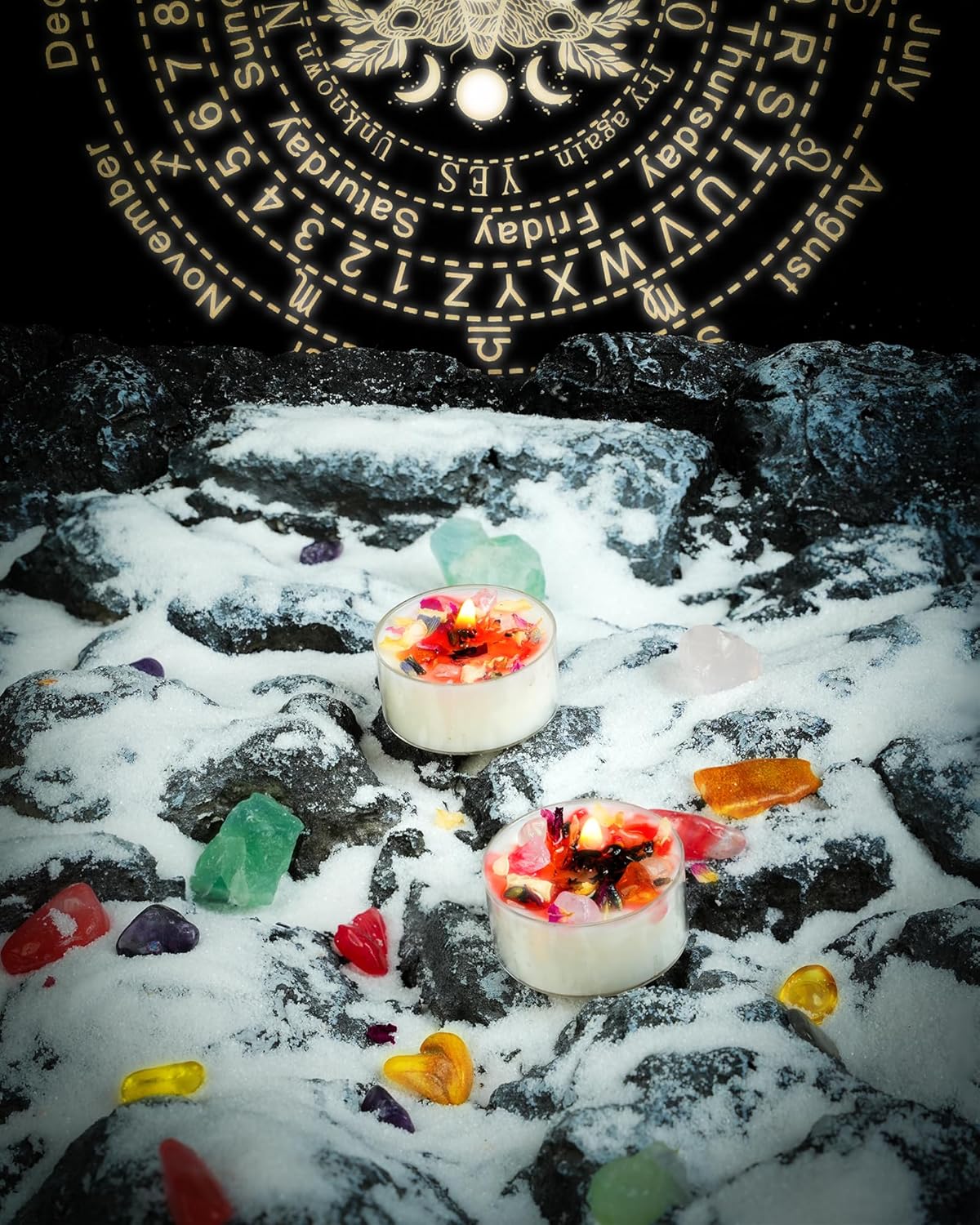 Tealight Candles with Crystals and Herbs, Handmade Energy, Healing Crystal, Aromatherapy Candles. (Pink)