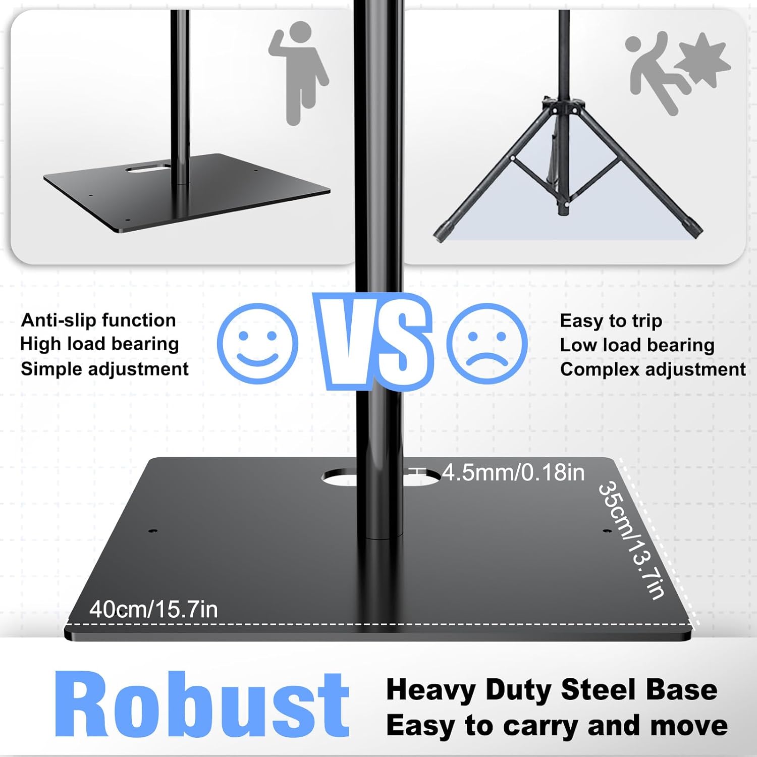 - Sturdy and Strong Construction: This heavy-duty photo backdrop stand bar is made by premium-grade aluminum alloy, designed to withstand rigors professional use, can hole up 33LB, each metal base weighs 10 LB can preventing any wobbling or tipping during use, ensuring it can easily stand heavy backdrops. lf you need to support exceeds 20 pounds, it is recommended to placesandbags,water bags, etc. on the bottom plate.