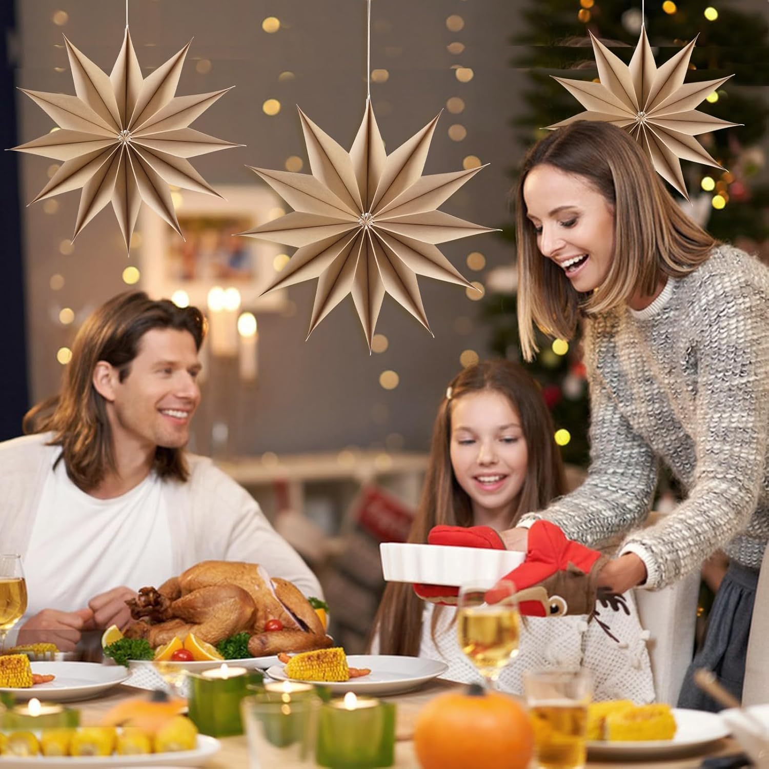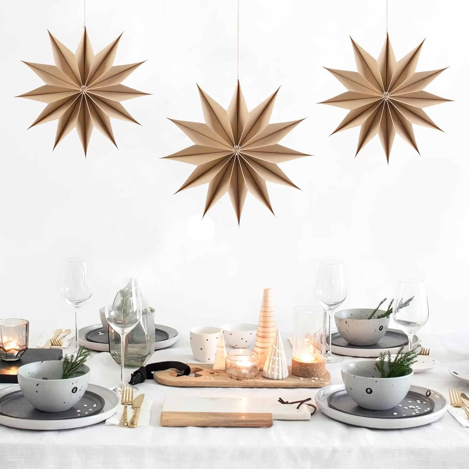 - Elegant Design : Elevate your holiday decor with EASY JOY's 12-pointed brown paper stars. Their intricate design and rich color add a sophisticated touch to any celebration, making them perfect for Christmas, weddings, and birthday parties.