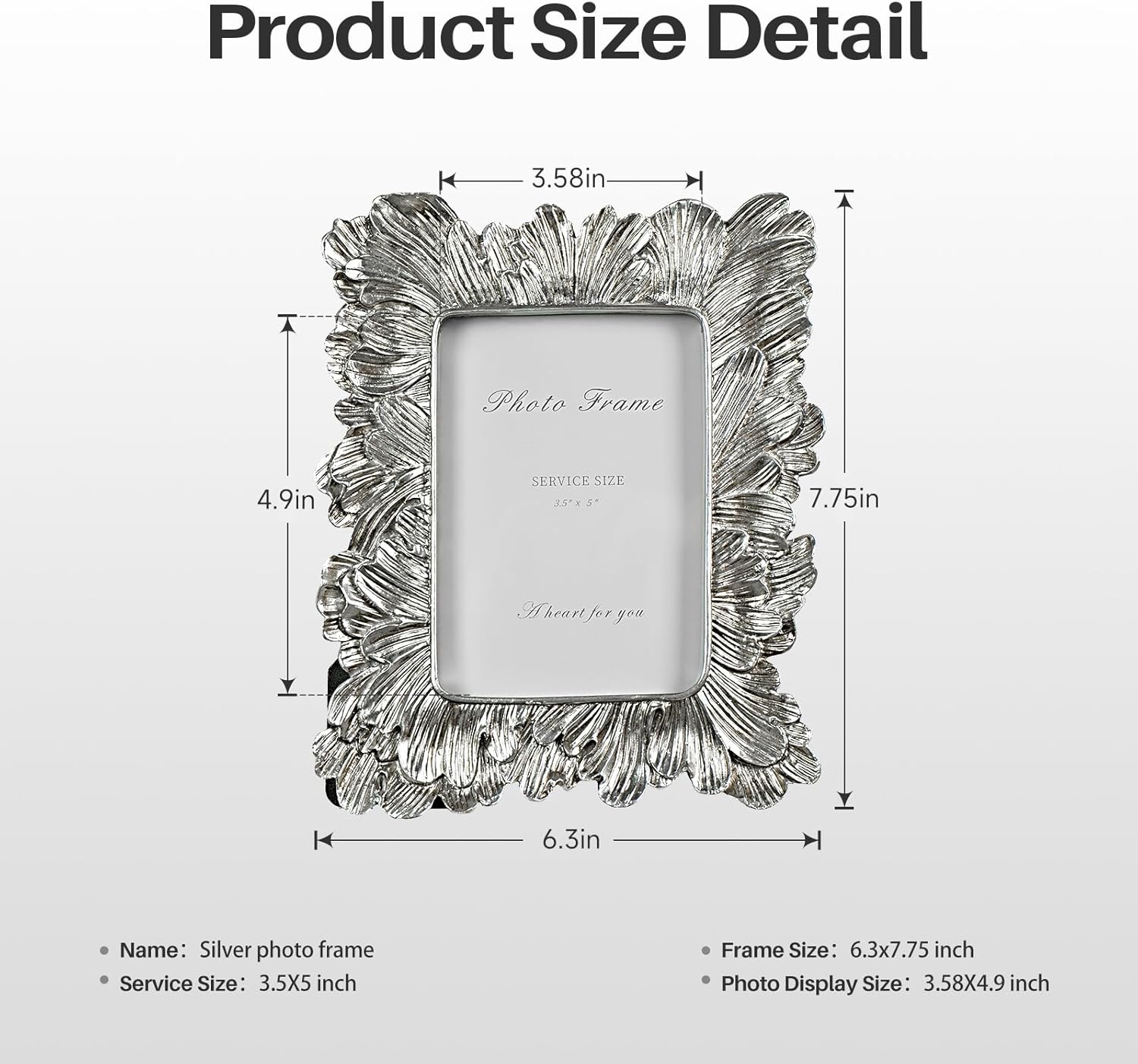 Silver 3x5 Picture Frame, Vintage Silver Palm Leaves Textured Hand-Crafted Resin with Glass Front, Small Frames Elegant Retro Rustic Design for Wall and Tabletop Display Home Decor