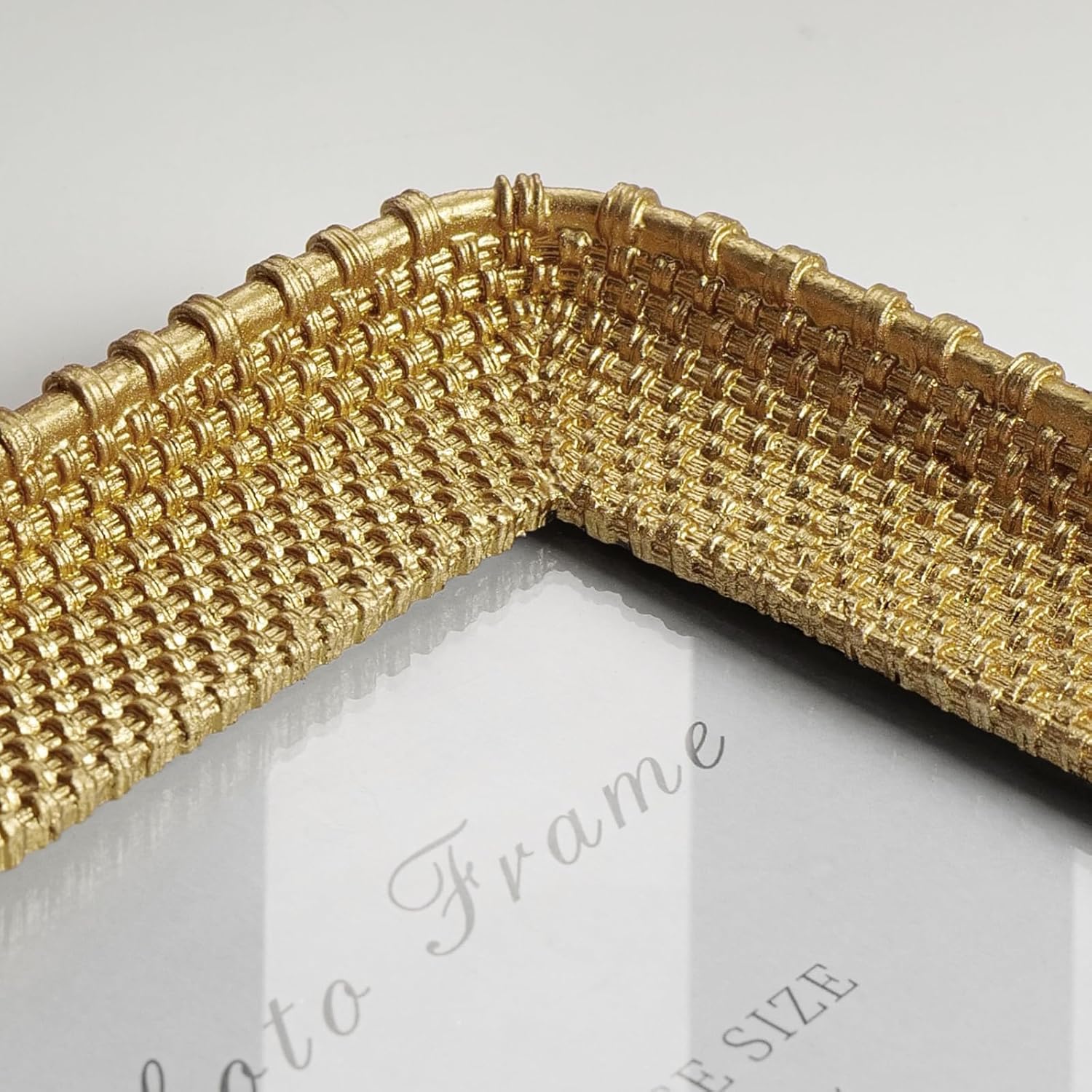Cuspin Vintage Gold 5x7 Picture Frame, Gold Metal Rattan Textured Hand-Crafted Photo Frame with Glass Front Antique Picture Frame for Tabletop Display & Wall Display, Retro Design Home Decor