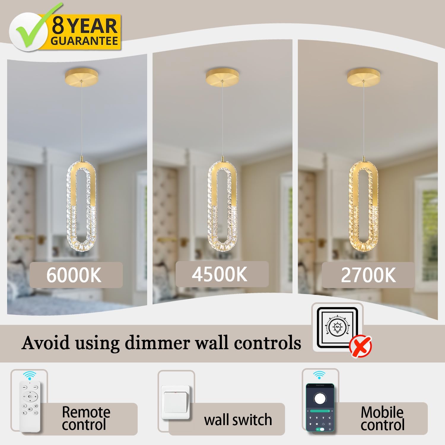 - 【Pendant Light Size】: Made of gold metal and crystal, the pendant light features a gold circular ceiling pan with a diameter of 5.9 inches. The crystal lamp shade has a diameter of 6.7 inches,H 21 inch. The pendant light has an adjustable cord and a total length of 59 inches, allowing you to choose the suitable height for your space.